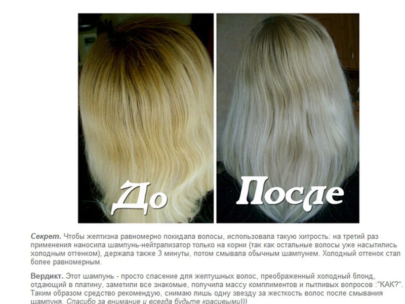 Волосы отбелены и окрашены, после выцветания они будут выглядеть желтыми. Желтый шампунь может помочь волосам желтеть, сделать эффект окрашивания дольше, серый более заметный, даже если он выцветает, он не превратится в желтый. Если вы хотите отбелить другие цвета, используйте их. После желтого шампуня отбеливающий краситель лучше окрашивается.Шампунь-это фиолетовая жидкость, и фиолетовый цвет может нейтрализовать желтый цвет волос для достижения эффекта защиты цвета.Обычно стирать в сером цвете 5,6 раз, цвет выцветает в основном, с желтым шампунем можно поддерживать в течение 1-2 месяцев.Рекомендуется использовать как можно скорее! Долгосрочное использование!Инструкции по использованию:1-2 раза в неделю. Намочите волосы, пена, шампунь, подождите около 3 минут, затем смойтеКогда время слишком длинное, волосы превратятся в серовато-фиолетовый цвет. Если вам это нравится, вы также можете лизнуть его!Черные волосы с использованием этого шампуня не имеют эффекта.