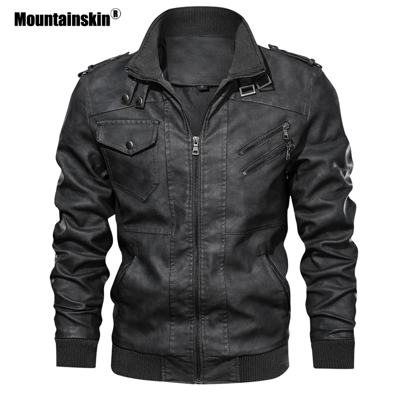 Куртка Mountainskin мужская кожаная, повседневная байкерская куртка из ПУ кожи, европейские размеры, осень, SA723