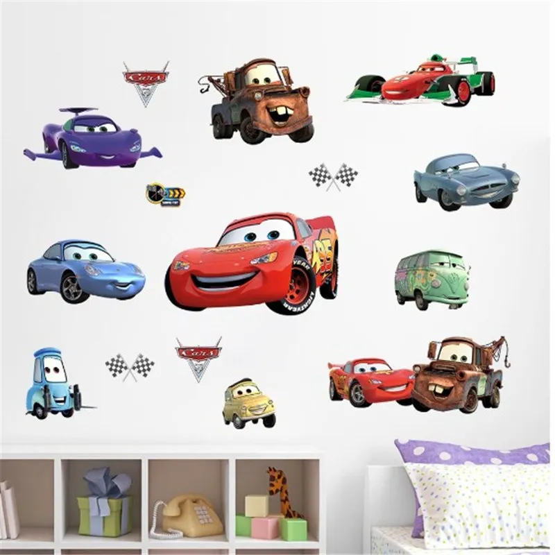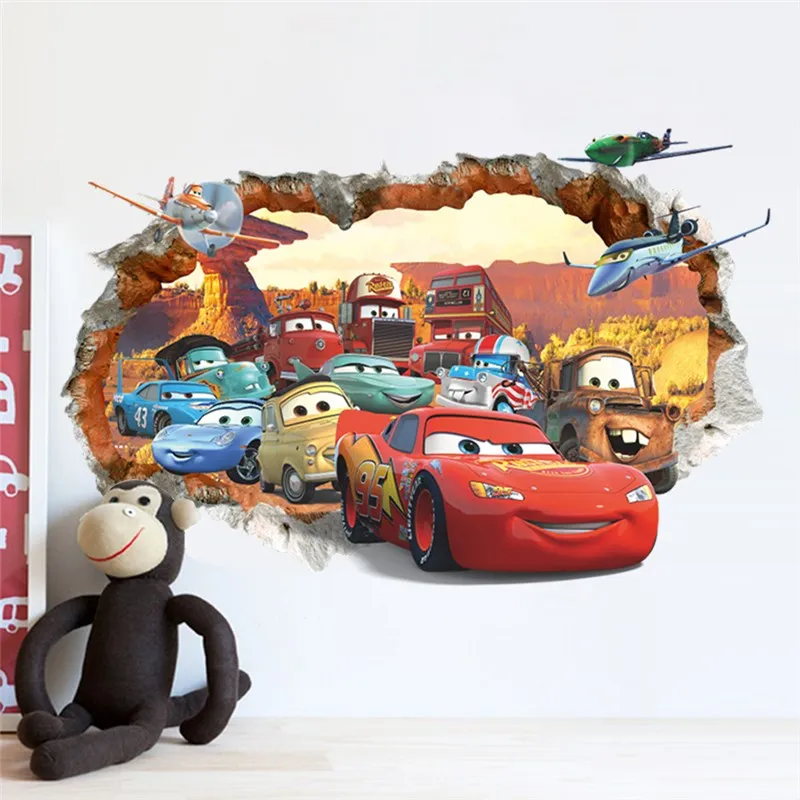 Настенные Стикеры с эффектом 3d, с мультяшными Тачками через стену, для спальни, детской комнаты, украшение для дома, диснеевские настенные наклейки из ПВХ, художественные плакаты сделай сам, подарки для мальчиков