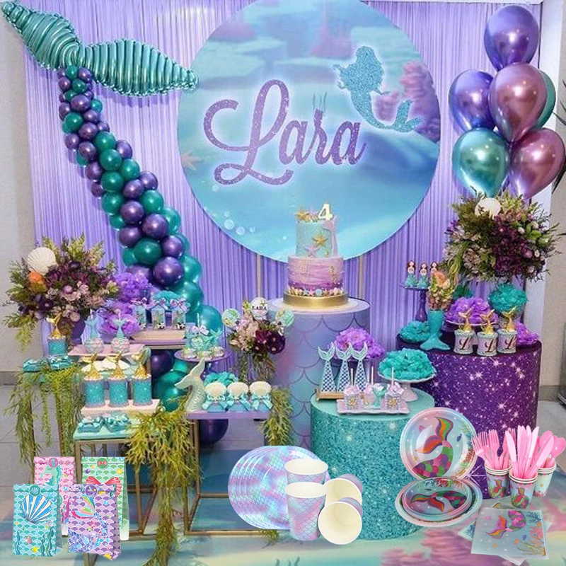 MEIDDING Русалка Вечерние одноразовые посуда счастливый костюм для празднования дня рождения бумажные чашки блюдце латексные шарики, День подарков будущей матери вечерние Декор