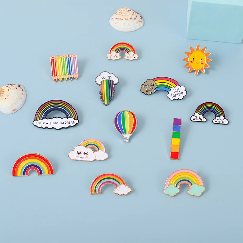 Брошь с эмалью, разноцветная брошь с мультяшными радужными облаками, Подарочный значок, 11 видов стилей