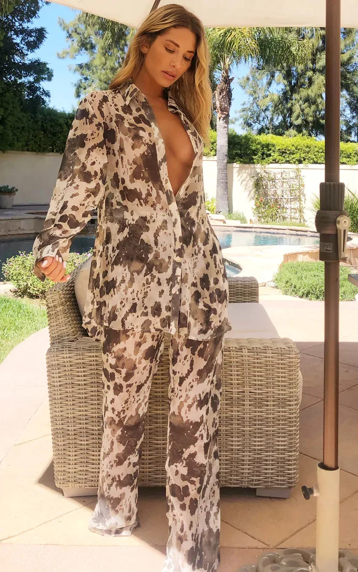 Женский шифоновый костюм VAZN, повседневный винтажный комплект из 2 предметов, рубашка с широкими штанинами и длинными рукавами, 2021