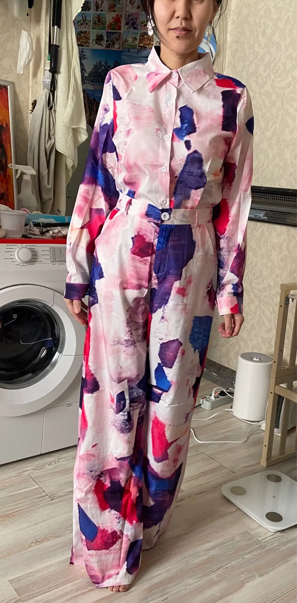 Только брюки широкие, гладкие, и на фото брюки выглядят плотно