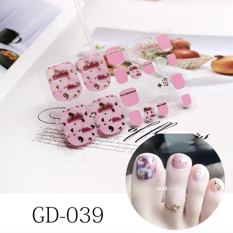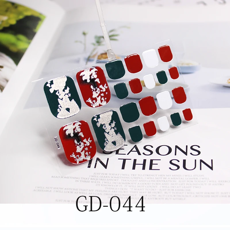 22 наконечника, Новые французские стикеры на ногти, цветы, ногти, полное покрытие, клейкие обертывания, водонепроницаемые, блестящая пленка для ногтей, наклейки-лак