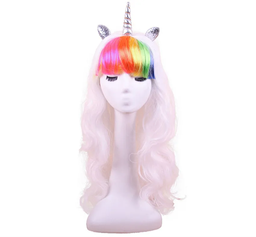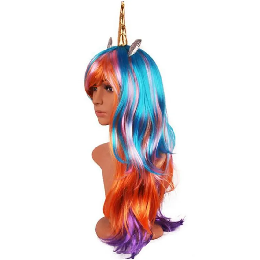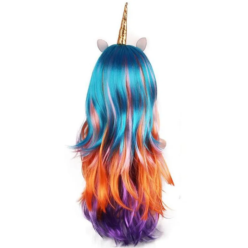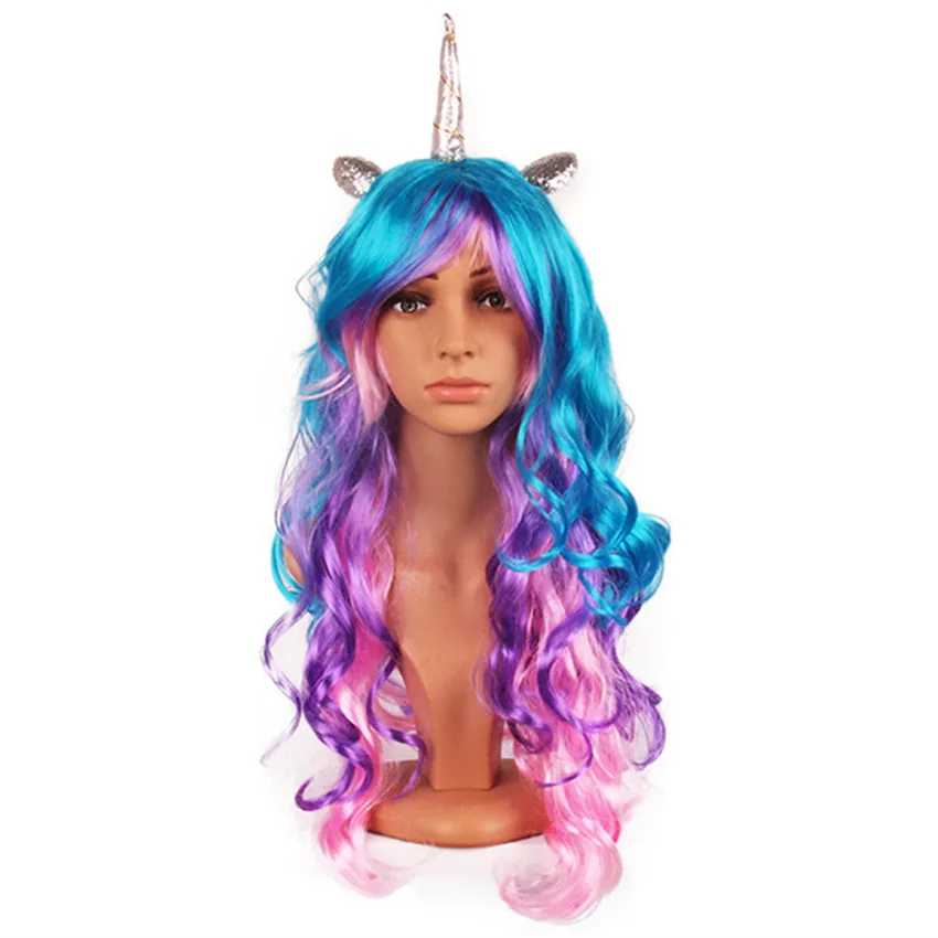 Детский парик из волос единорога для Хэллоуина, косплей для женщин, для девичвечерние, синтетический парик из высокотемпературного волокна