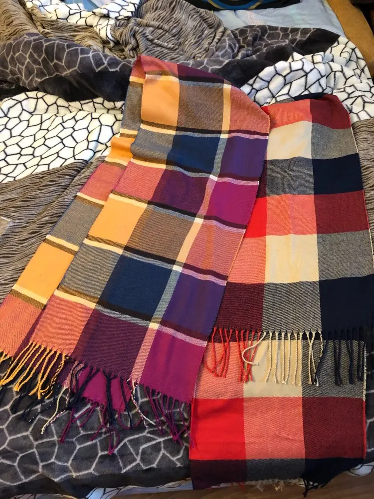 Сначала брала такой шарфик по акции себе, очень понравился и не только мне. Заказала родственникам, но тётин где-то потерялся, пришлось открывать спор. В итоге спор выиграла и заказала повторно. На этот раз пришёл без приключений. Шарфик, конечно, синтетический, но мягкий и достаточно широкий. Теперь и тётя довольна.