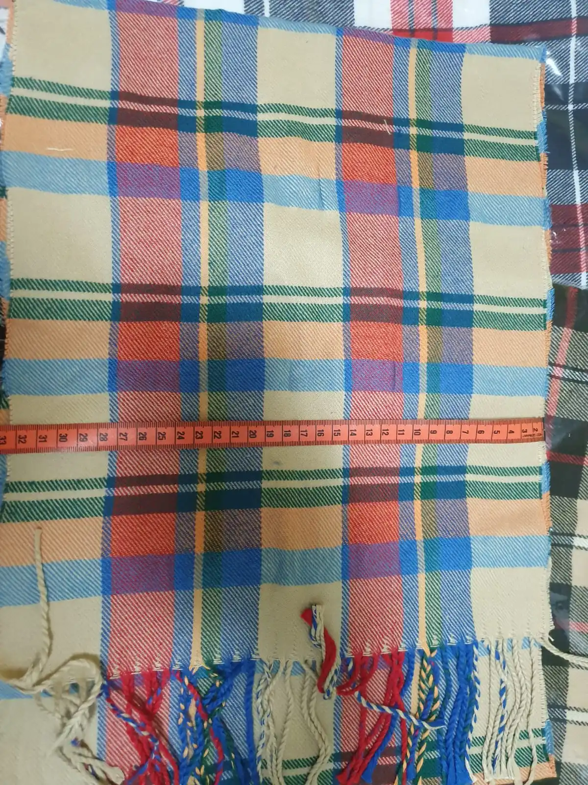 очень хорошие шарфы и по длине и по ширине в самый раз. если просто повесить на шею то оба конца почти до колена. если обмотать то получается в самый раз. на израильскую зиму самое то. для российских морозов нужно конечно что-то поплотнее. ткань очень мягкая и приятная, и цвета как на картинке продавца
