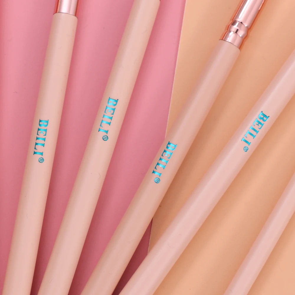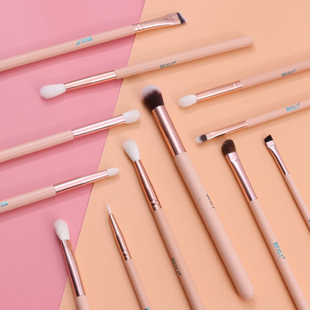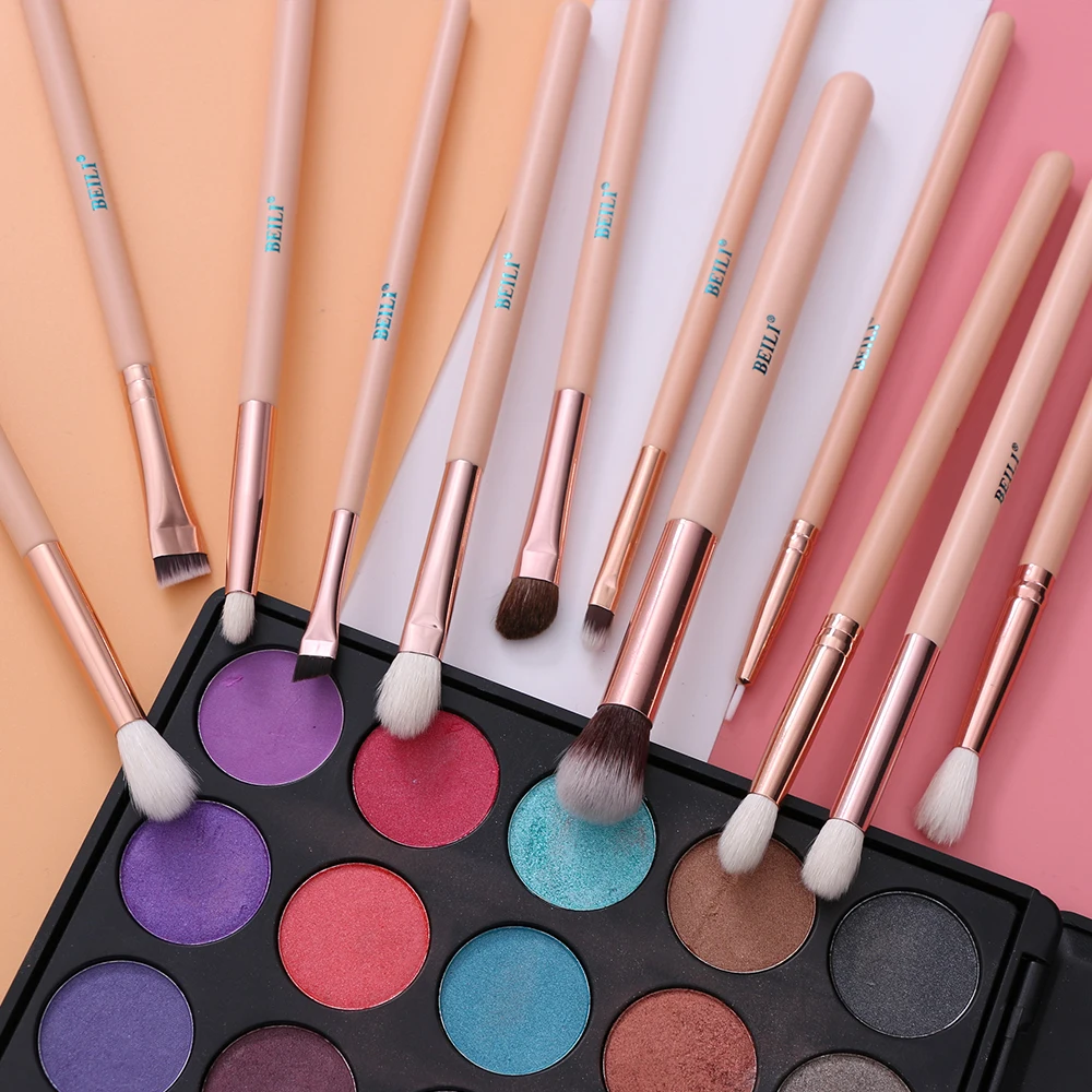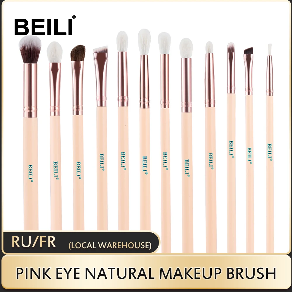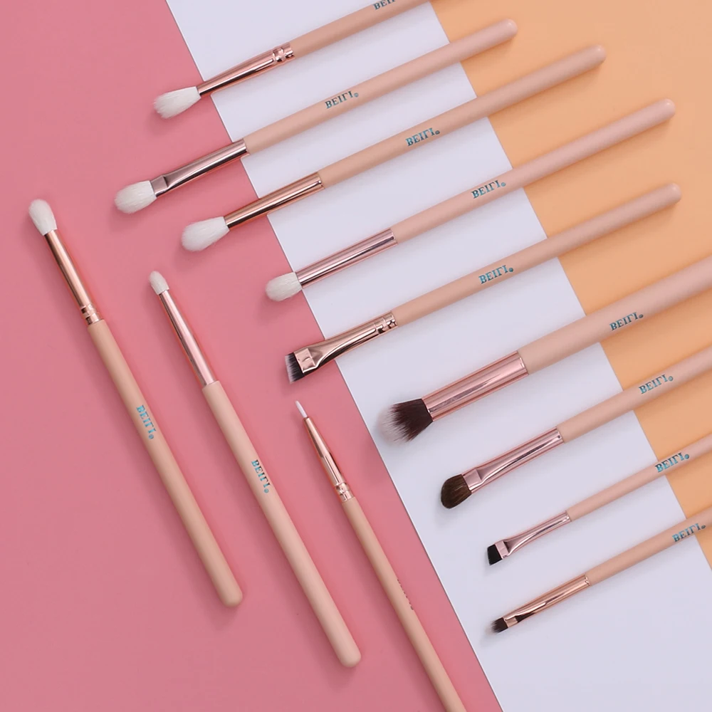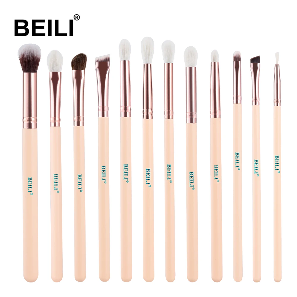Набор кистей для макияжа BEILI профессиональный, кисточки розовыеЗолотые из козьей шерсти, Тени Карандаш для глаз, карандаш для бровей, 12 шт.