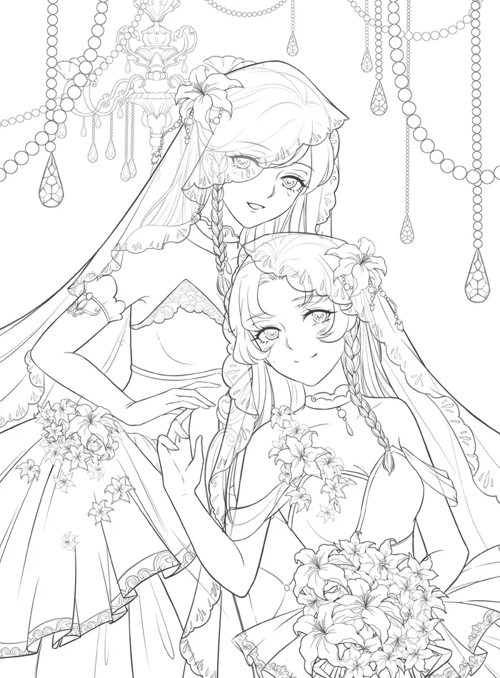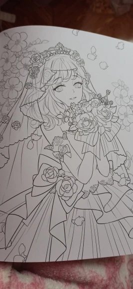 Раскраска просто изумительная! Сказочной красоты рисовка в стиле "СейлорМун", невероятная фантазия в платьях, разнообразие стран и народов. Интересно рассматривать даже не раскрашенную книгу как чудесный артбук. Книга на склейке, раскрывается отлично. Бумага чуть кремовая, гладкая, идеальная для карандашей. Акварель, думаю, можно применять, но с минимумом воды.