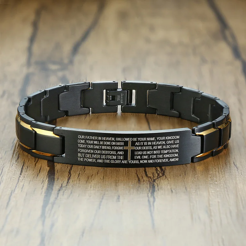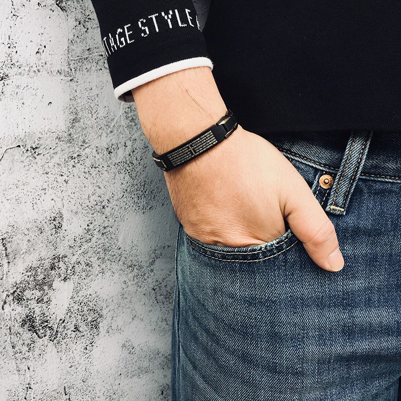 Металлический браслет из нержавеющей стали для мужчин, латинский, японский, корейский язык, молитва христианского Господа