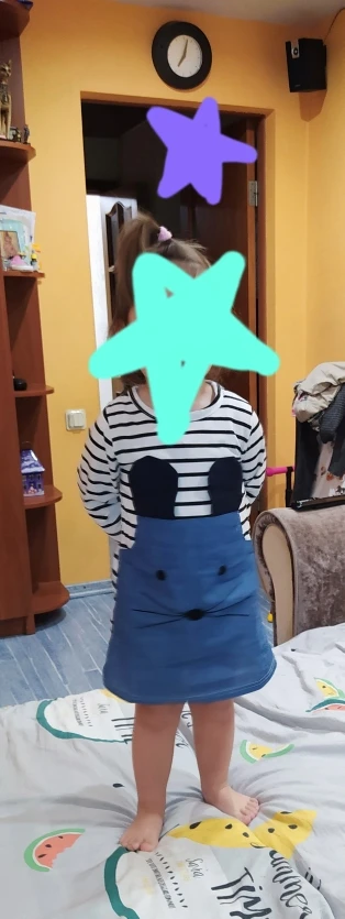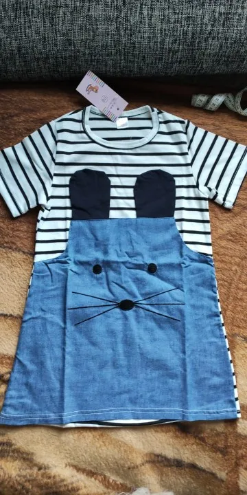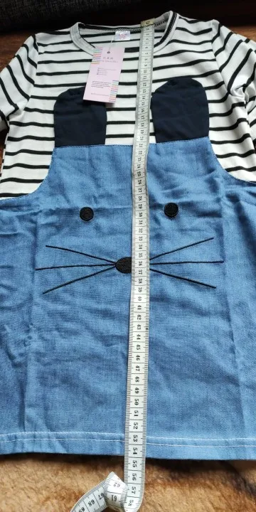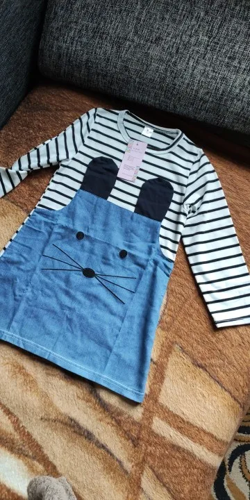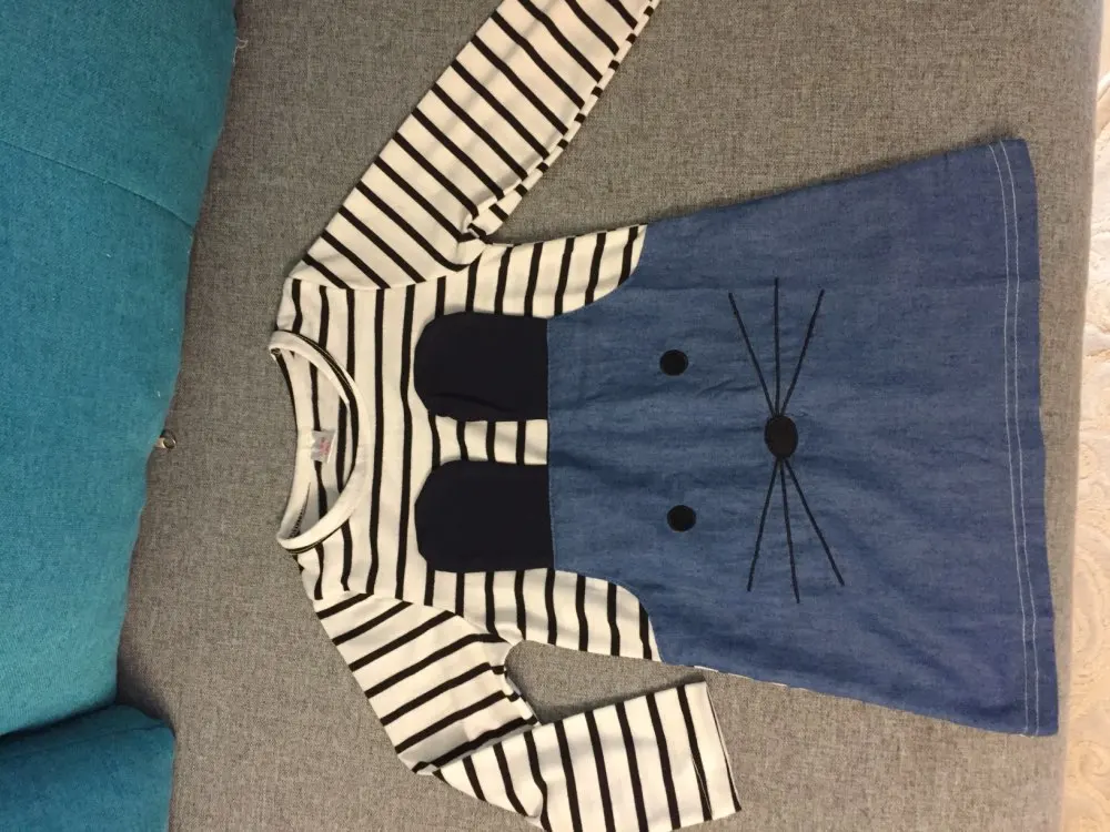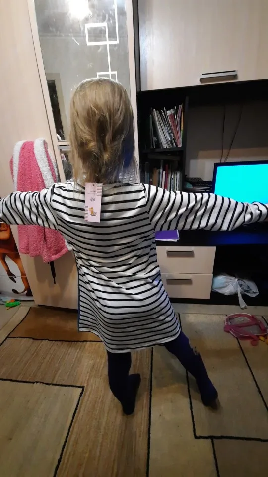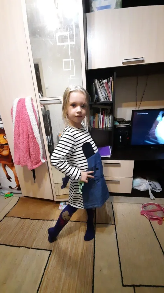 Платье получили довольно быстро. На рост 105 взяли 4Т/110, подошло в самый раз. Из минусов: очень тонкое. Трикотаж буквально просвечивает. Судя по материалу очень скоро скатается в катышки. Джинсовая вставка - это конечно не джинсовая ткань, очень тонкая. Из плюсов: очень милое Скорее всего будем носить как тунику к брюкам/лосинам
