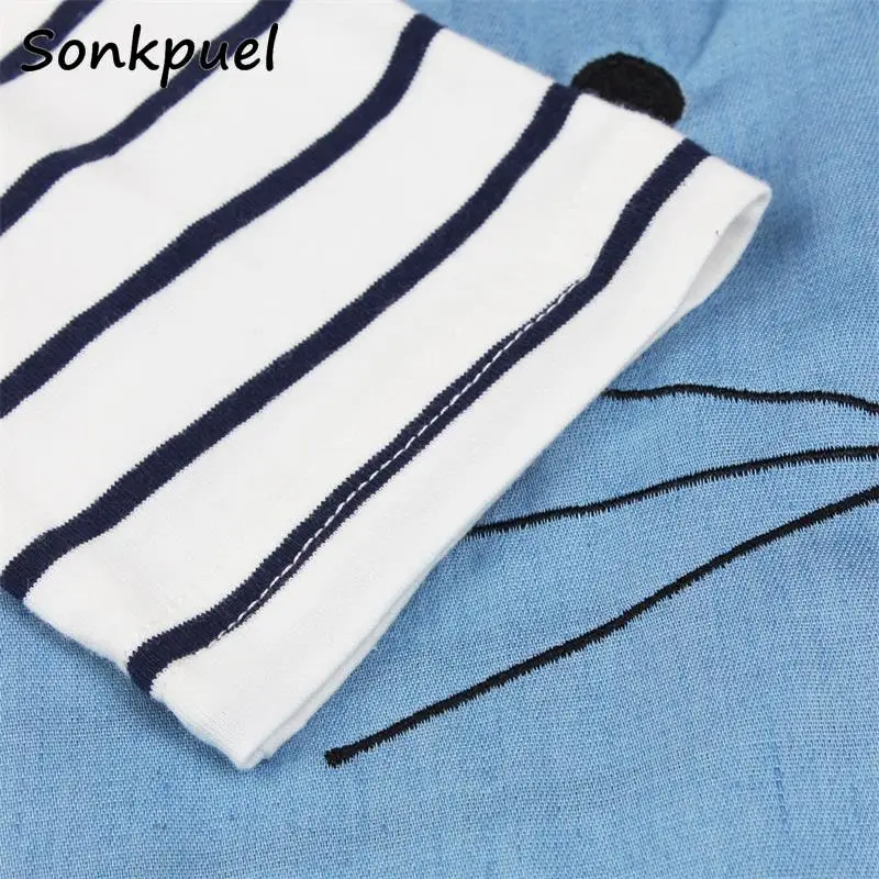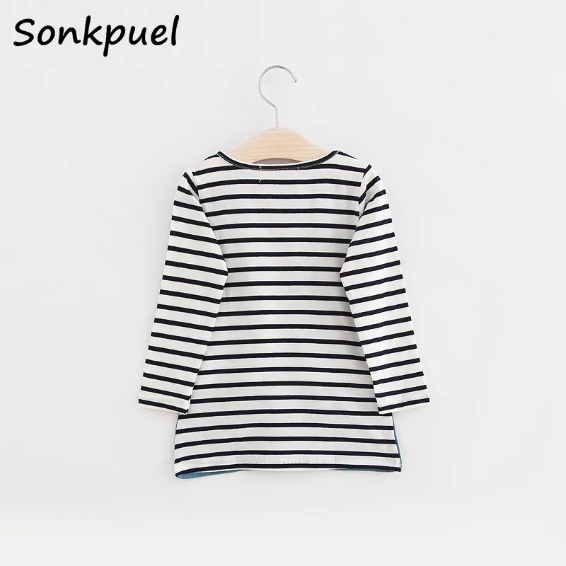 Детское джинсовое платье, в полоску, для девочек 2, 3, 4, 6, 8 лет, летнее, платье принцессы с длинным рукавом