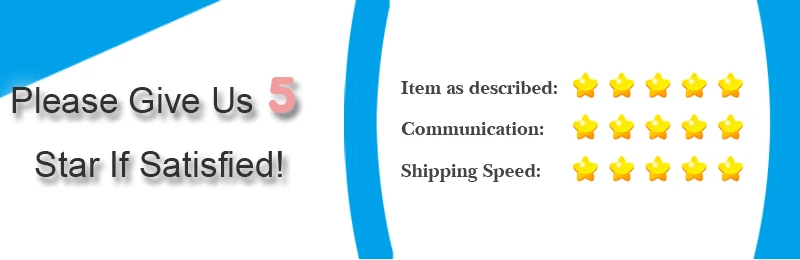 Если вы удовлетворены нашим обслуживанием и производством, мы ожидаем положительные отзывы и 5 звезд Детальной оценки продавца, мы сделаем то же самое для вас. Если у вас есть какие-либо проблемы или вы не удовлетворены нашими продуктами и услугами, пожалуйста, не стесняйтесь связаться с нами в любое время, прежде чем оставить другие отзывы, мы ответим Вам в течение 24 часов.