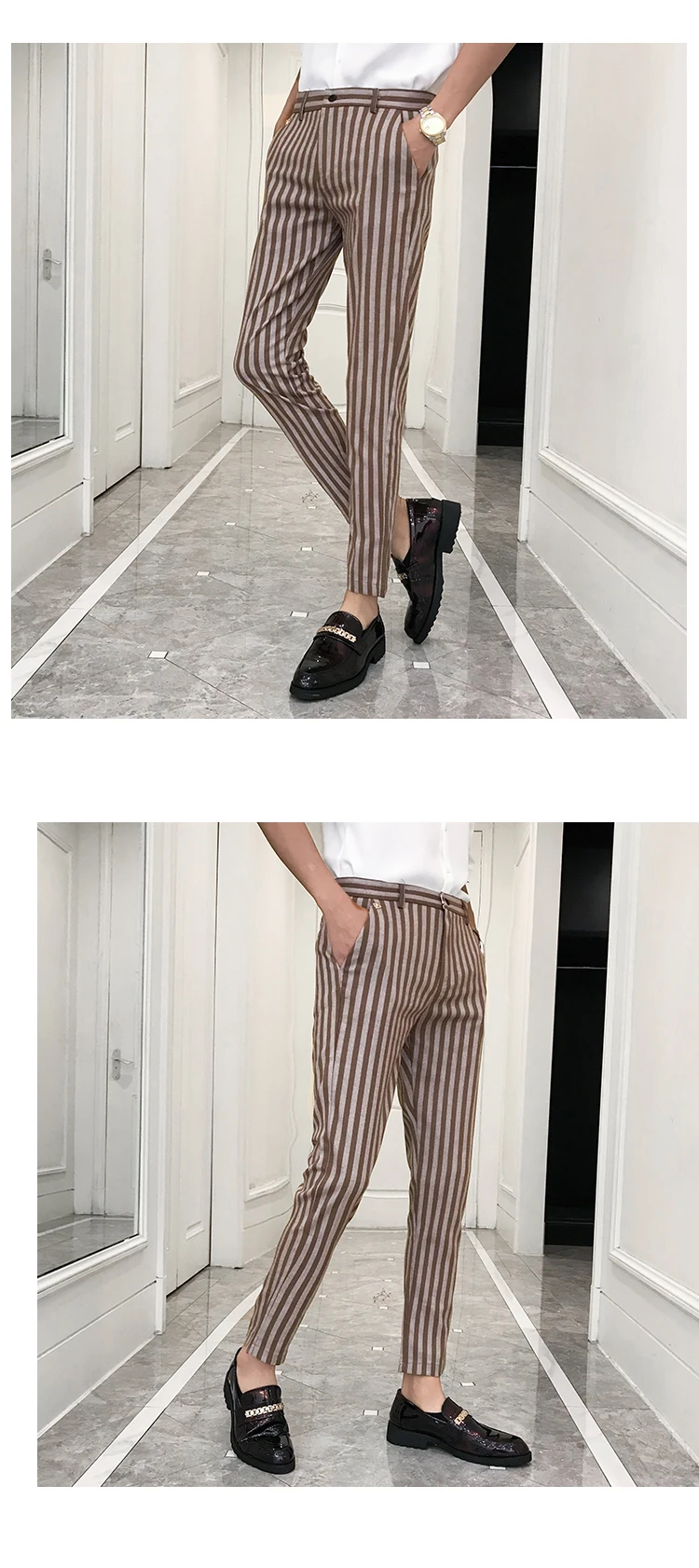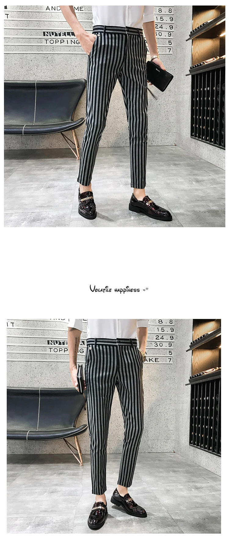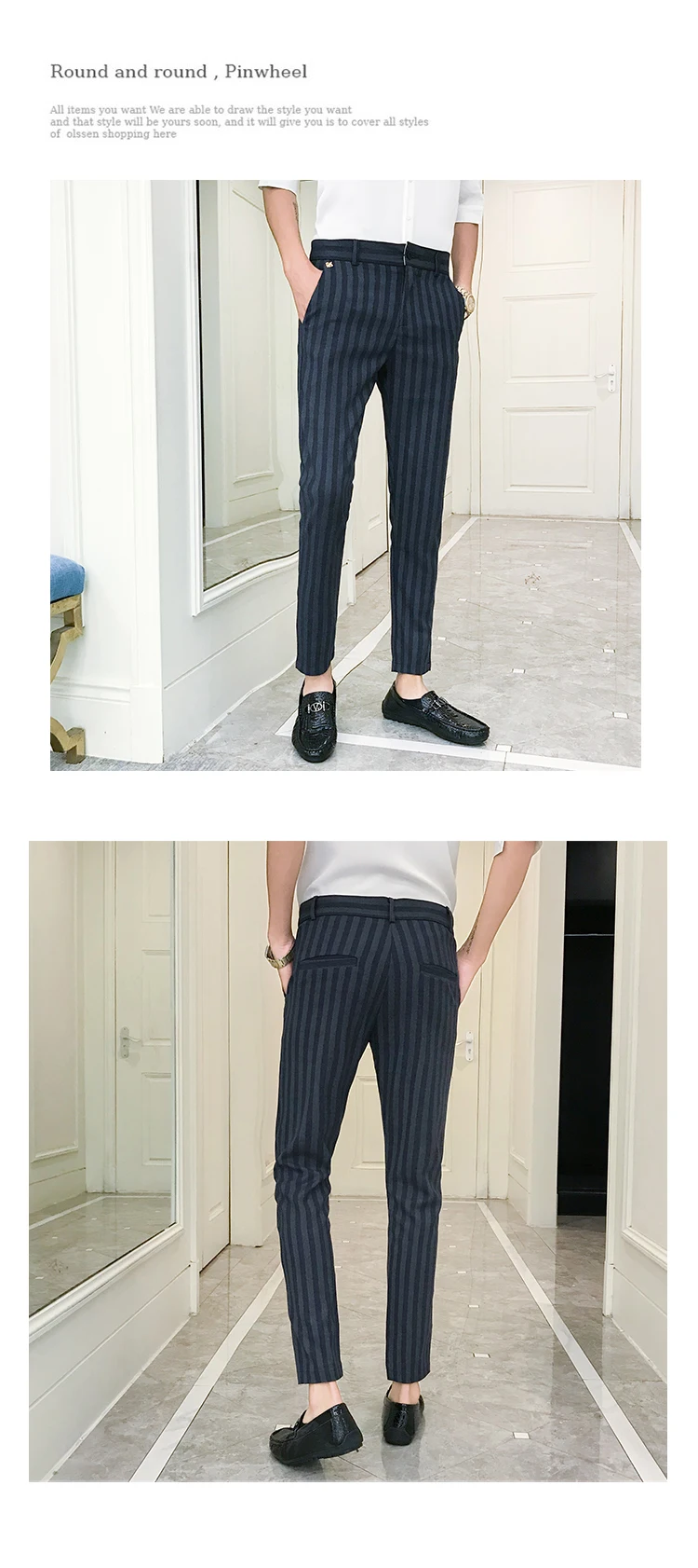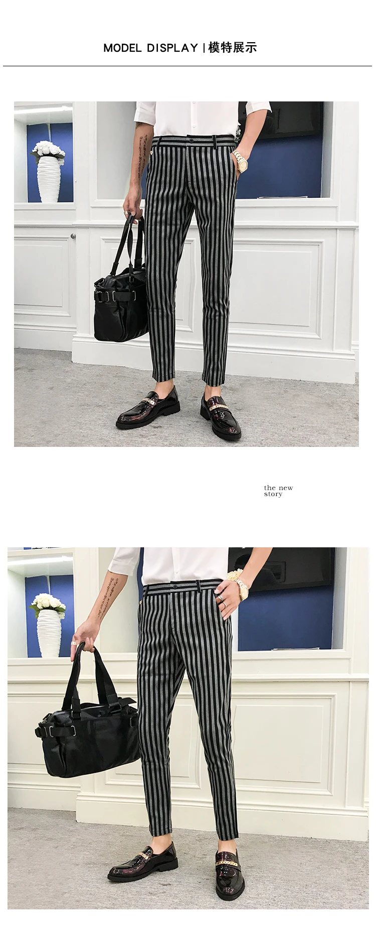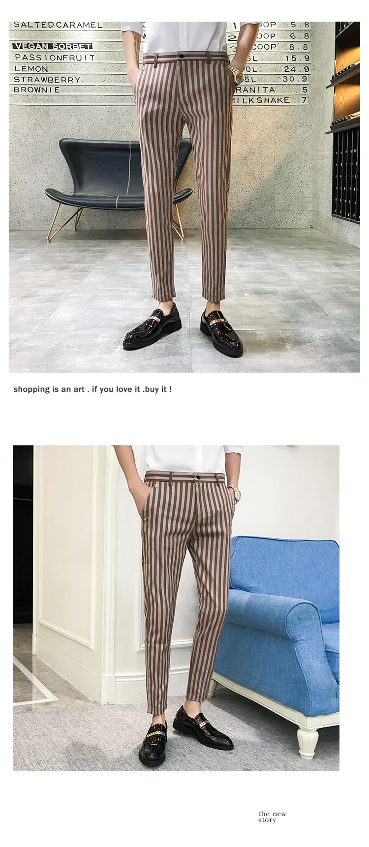 Осенние повседневные брюки в британском стиле, брюки в полоску, мужские брендовые дизайнерские облегающие мужские костюмные брюки, Мужская одежда для джентльменов, 2019