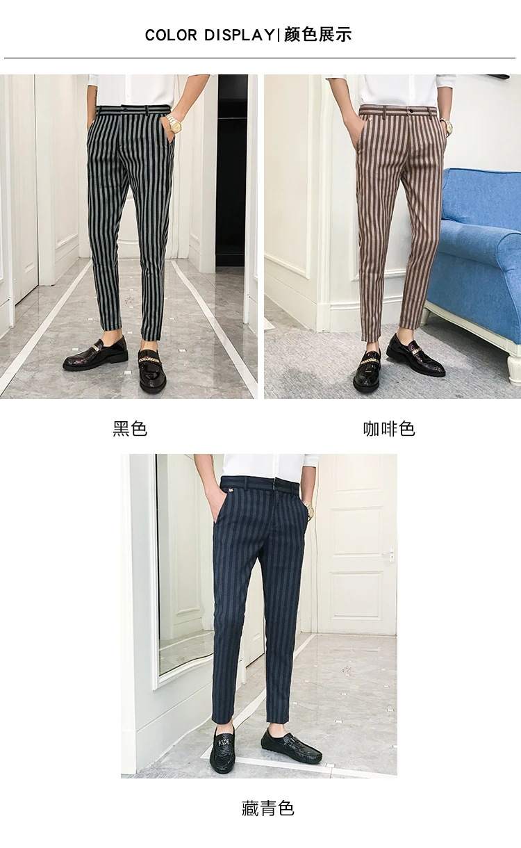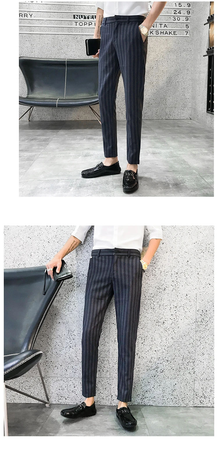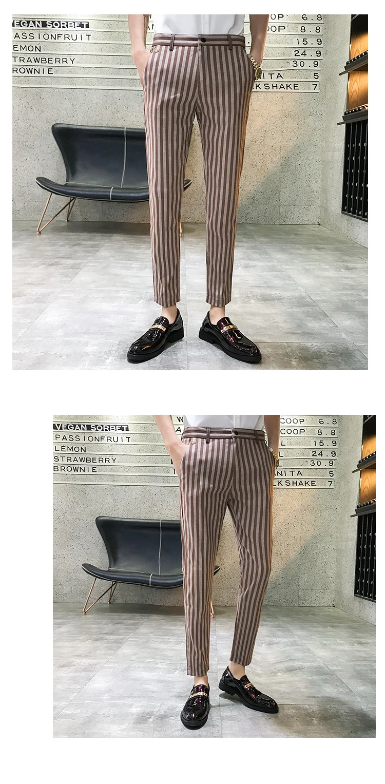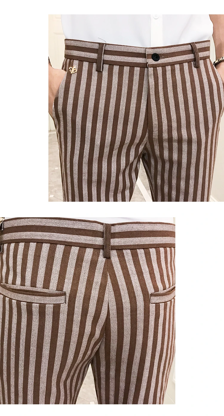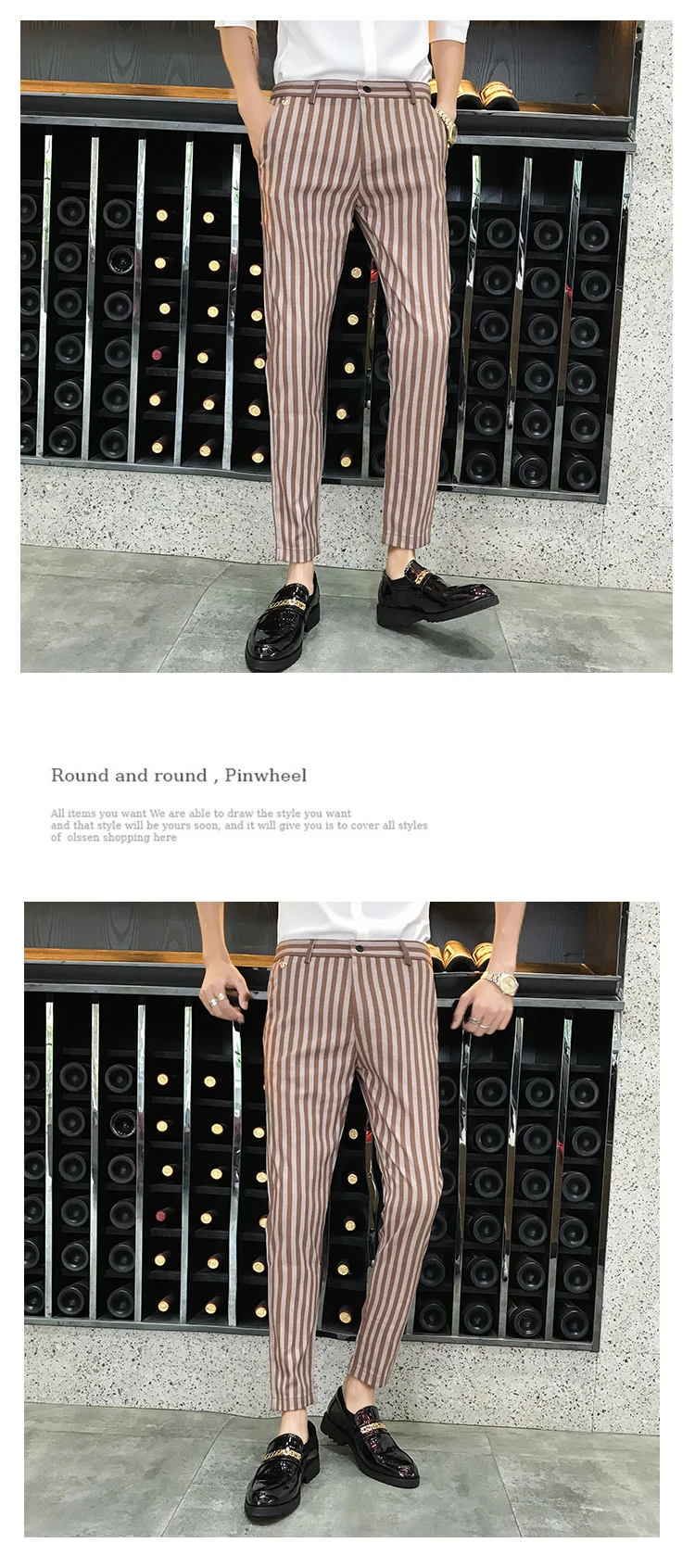 Осенние повседневные брюки в британском стиле, брюки в полоску, мужские брендовые дизайнерские облегающие мужские костюмные брюки, Мужская одежда для джентльменов, 2019