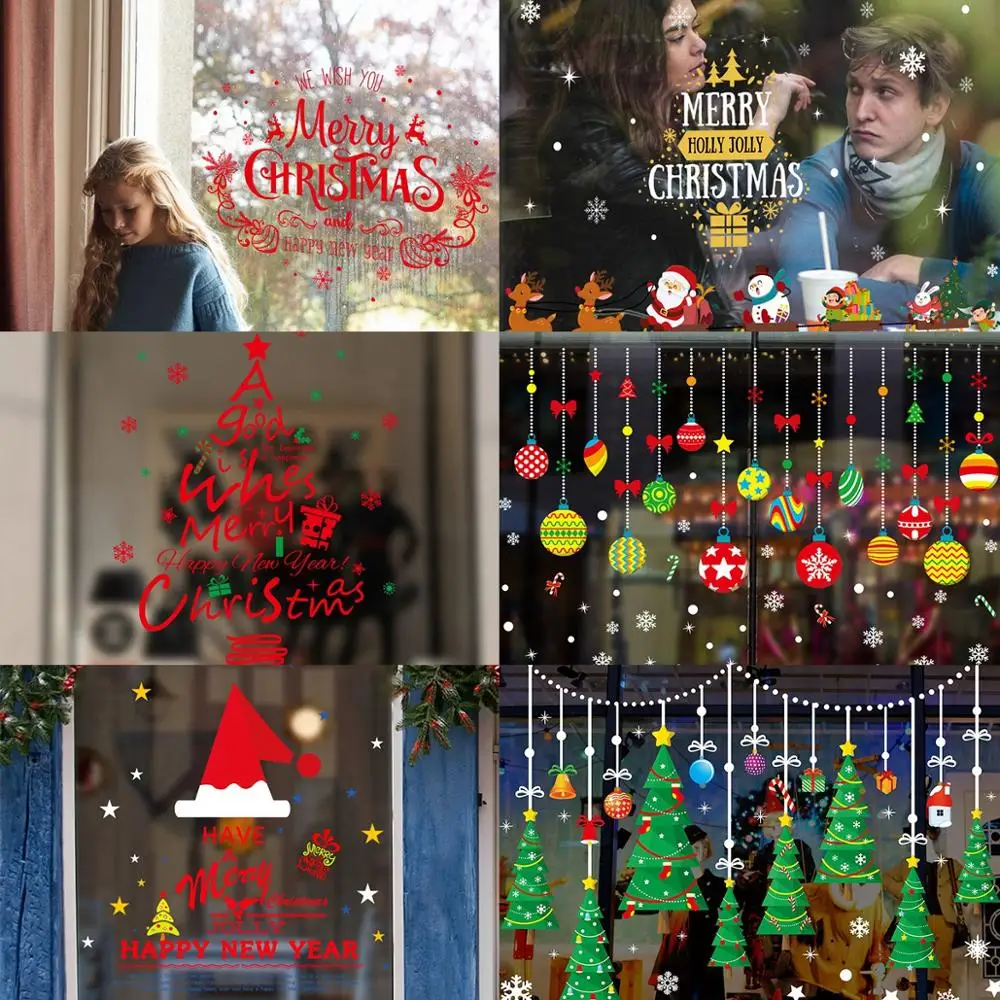 Рождественские украшения для дома, новогодние наклейки на окно год,...