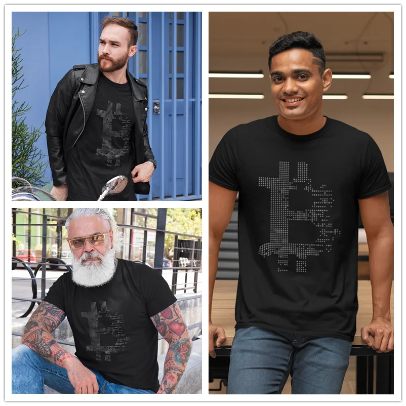 Футболка с принтом биткоина, криптовалюты, серая футболка, хлопковая Футболка с графическим принтом, повседневная мужская футболка с коротким рукавом 4xl
