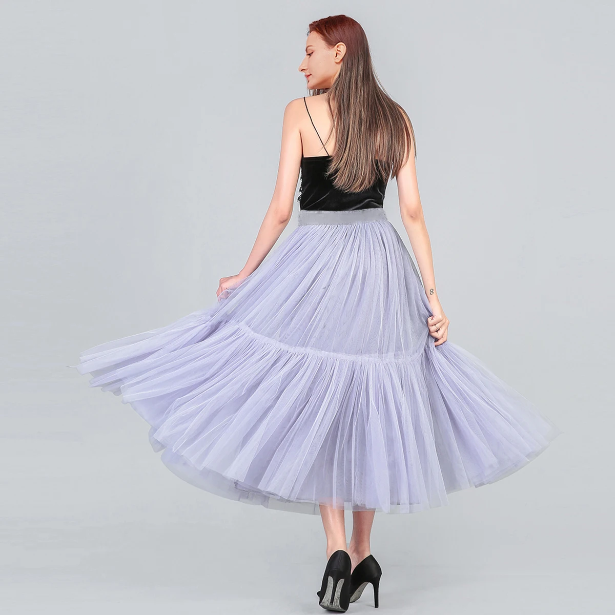 юбка - прелесть. пышная, сетка мягкая. мне на рост 170 длинная, до щиколоток. серная до колена, очень пышная, но сетка жёстче