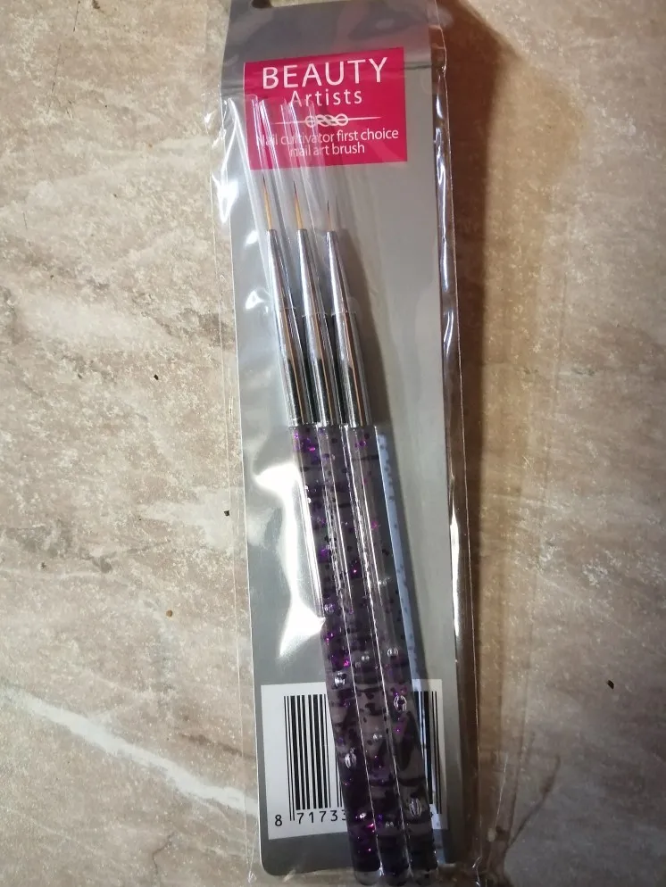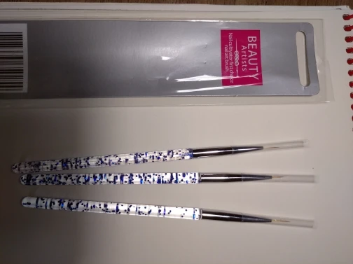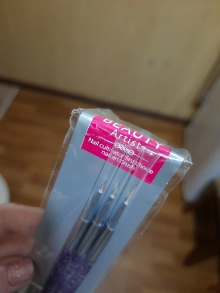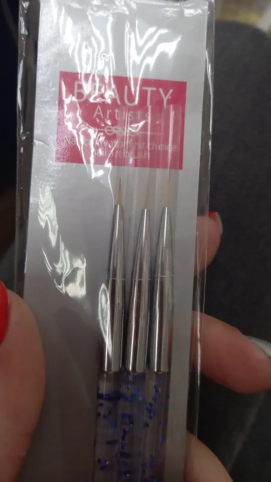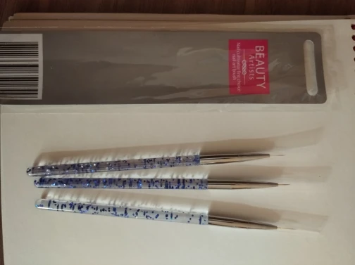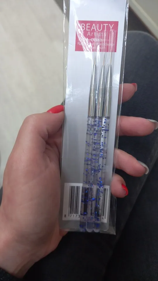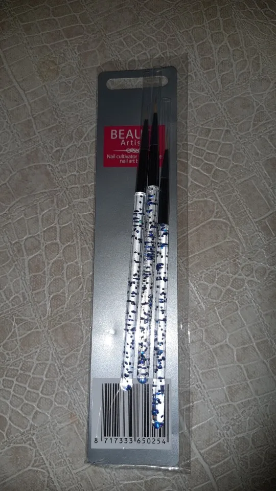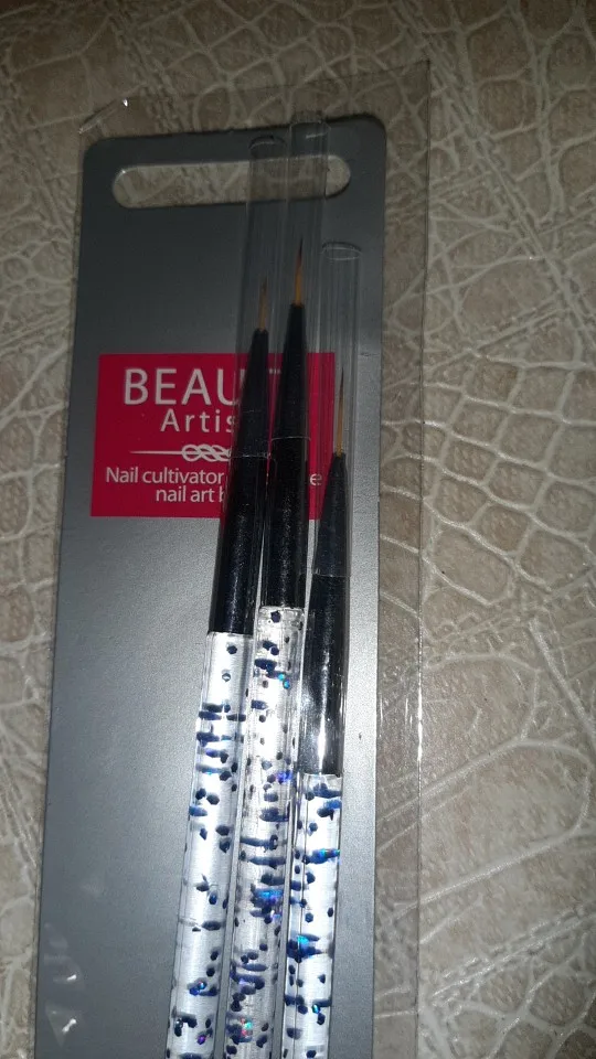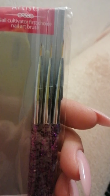 Доставка до Пскова месяц. Кинули в почтовый ящик. Кисти самые обычные, синтетические, диаметр и длина разная, хотя 2 между собой очень похожи длиной ворса (обе длинные). В руке держать удобно, рукоять привлекает внимание. Рисовать ими трудновато, но можно, а вот подкрашивать у кутикулы и выравнивать материал - самое то.