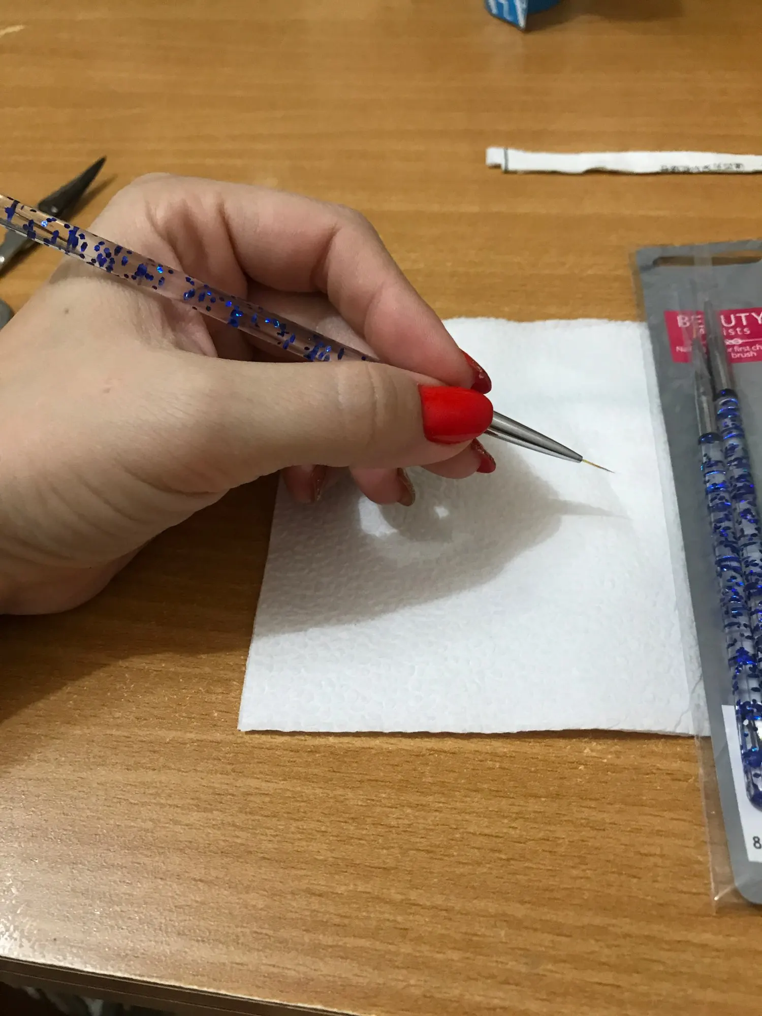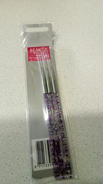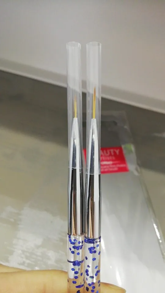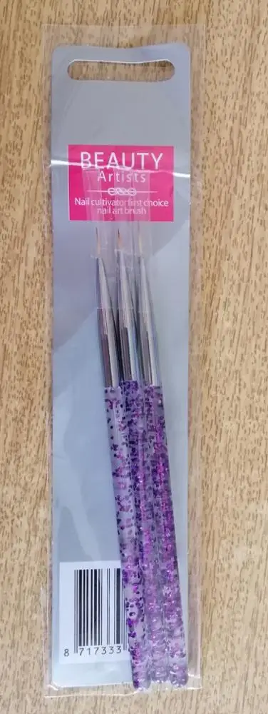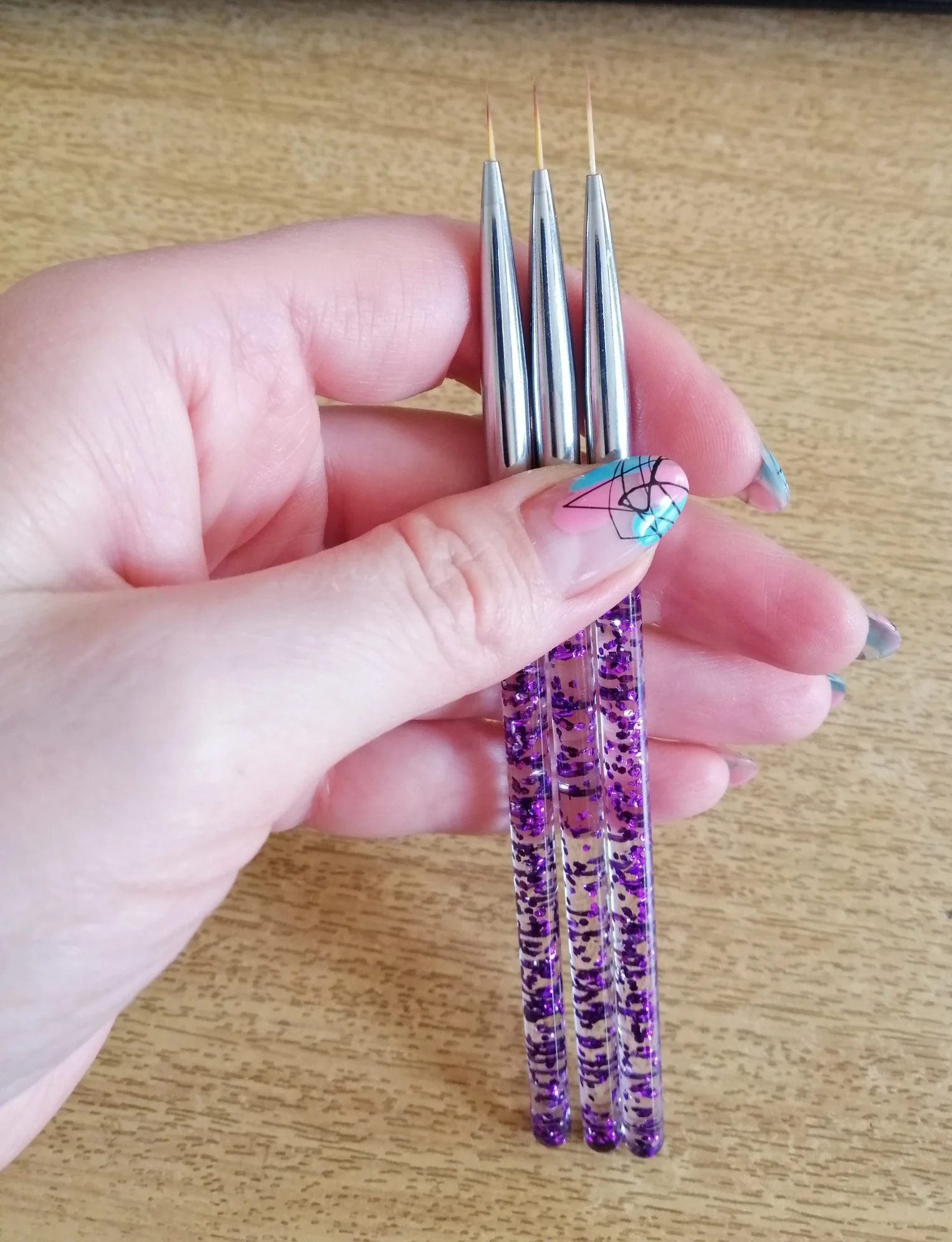 Доставка до Пскова месяц. Кинули в почтовый ящик. Кисти самые обычные, синтетические, диаметр и длина разная, хотя 2 между собой очень похожи длиной ворса (обе длинные). В руке держать удобно, рукоять привлекает внимание. Рисовать ими трудновато, но можно, а вот подкрашивать у кутикулы и выравнивать материал - самое то.