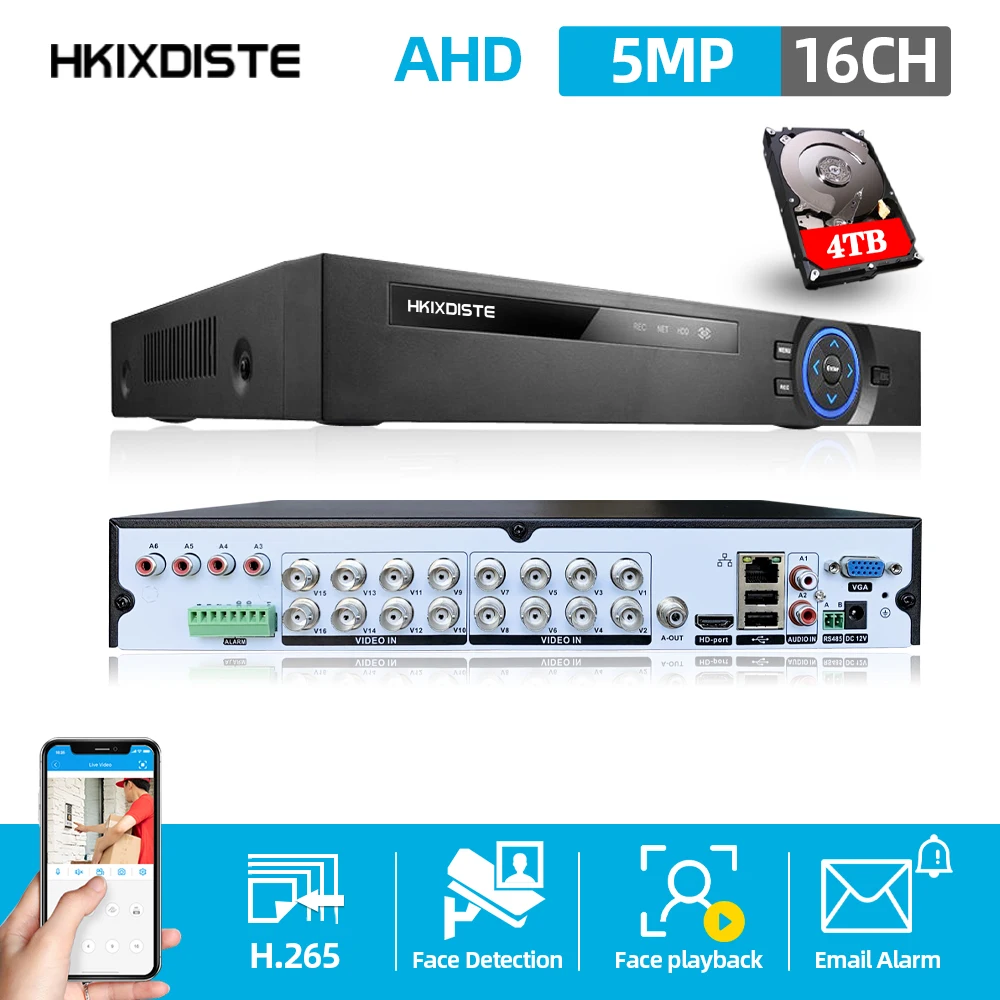 H.265 5MP AHD DVR NVR XVR CCTV 4Ch 8Ch 16Ch 1080P 4MP 5MP гибридный видеорегистратор безопасности камера RS485 Coxial контроль P2P