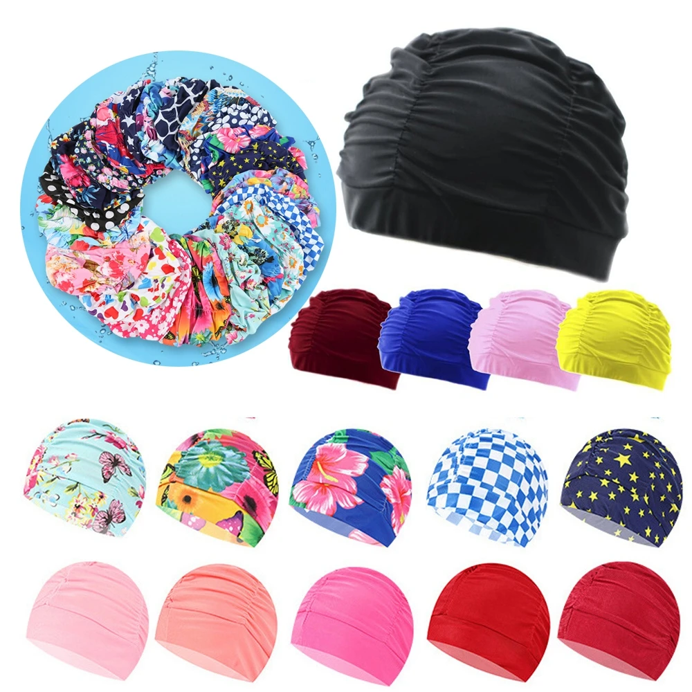 1 шт. свободный размер шапочка для плавания с цветочным принтом для бассейна и ванной шляпы водонепроницаемые кепки длинные волосы защита эластичные нейлоновые тюрбан для мужчин и женщин