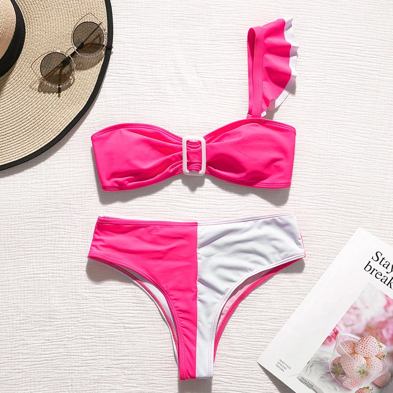 Mossha, сексуальные стринги, розовое бикини, неоновый купальник, женский купальный костюм, на одно плечо, бикини, набор, 2020, купальники для женщин, с высоким вырезом, бикини, Новинка
