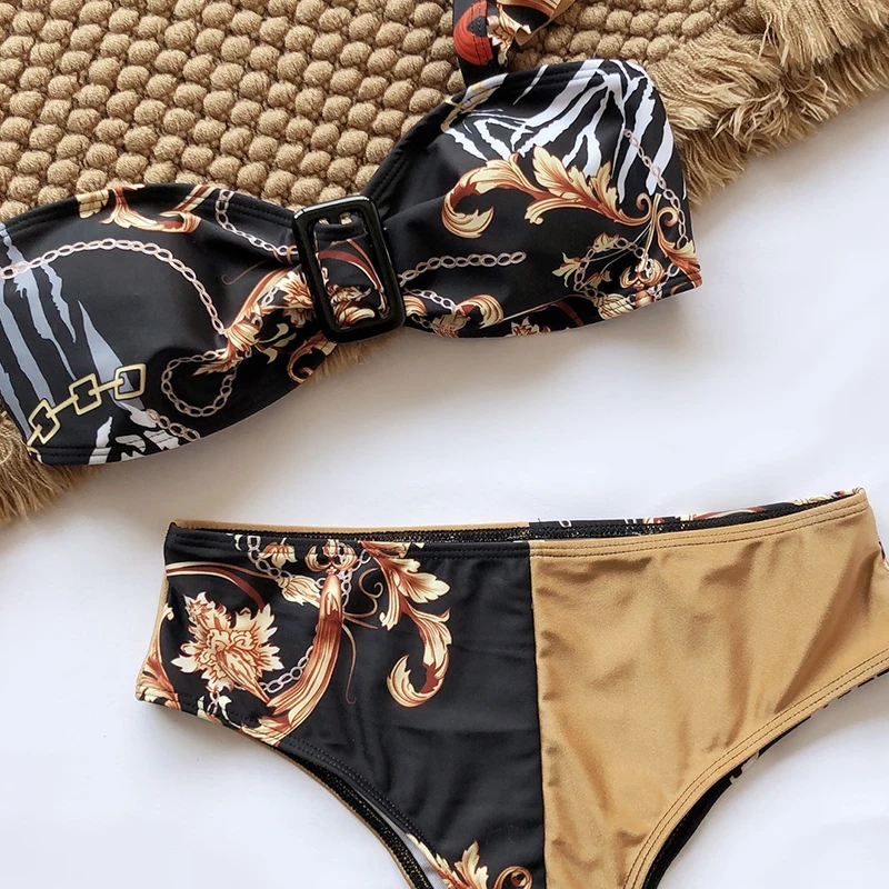 Пикантный комплект бикини-бандо Peachtan 2021, женский черный купал...