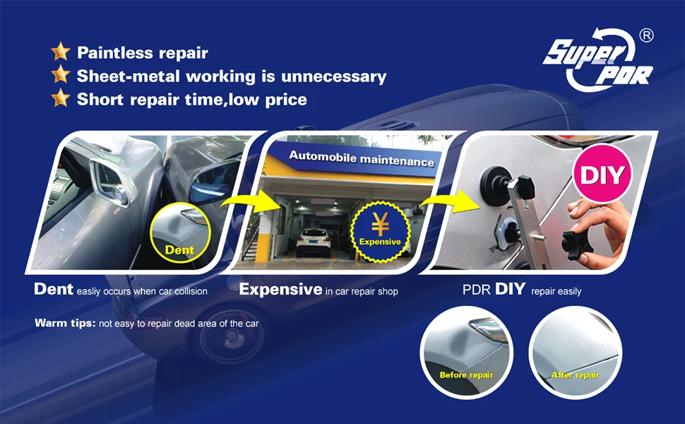 С более чем 10-летним опытом в научные исследования и развития технологий и инструменты для беспокрасочного удаления вмятин, это профессиональная цель компании, чтобы проектировать и самое лучшее качество и многофункциональные инструменты для беспокрасочного удаления вмятин по всему миру. Мы построили учебные школы и ремонтные базы автомобилей для ремонта автомобилей вмятин, и набрали богатые промышленные ресурсы, специалистов и инженеров.