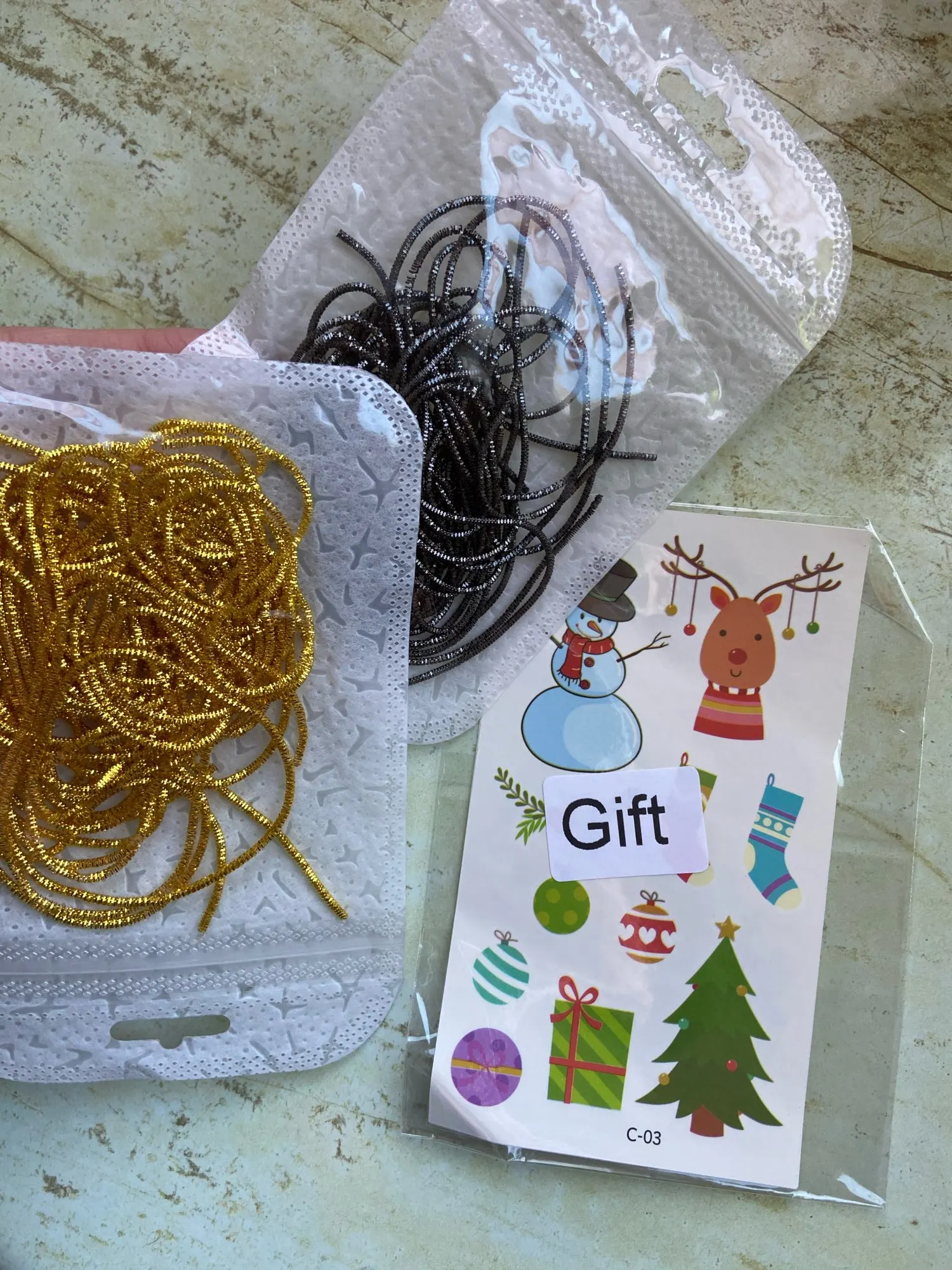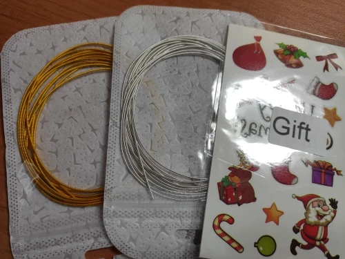 Канитель ровная без заломов. в работе не пробовала. Надеюсь не потемнеет. Спасибо за подарки, продавец положил наклейки.