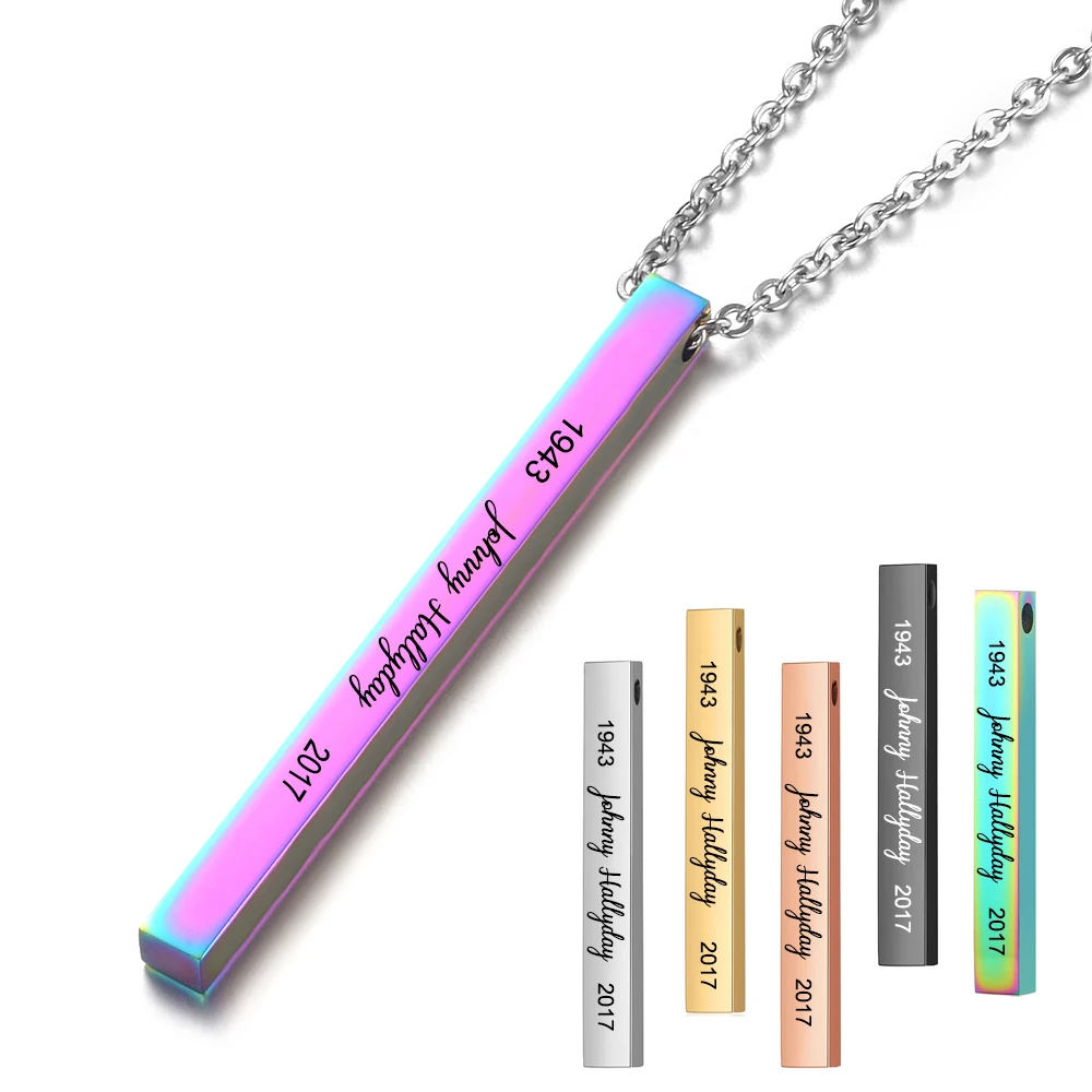 Материал: нержавеющая стальЦвет: серебристый/золотой/розовое золото/черный/РадужныйРазмер подвески: длина: 60 мм ширина: 5 ммЦепь: 50 смПосылка: 1 ожерельеПримечание: цвет радуги покрыт (разные цвета могут не совпадать с фотографией), если не возражаете, пожалуйста, не размещайте заказ.Поддержка местного языка: текст, имя, логотип, номер телефона, буквы, фразы,...Кроме того, мы можем гравировать звуковые волны, Морзе, ЭКГ, координаты, девиз, фраз и т. Д.