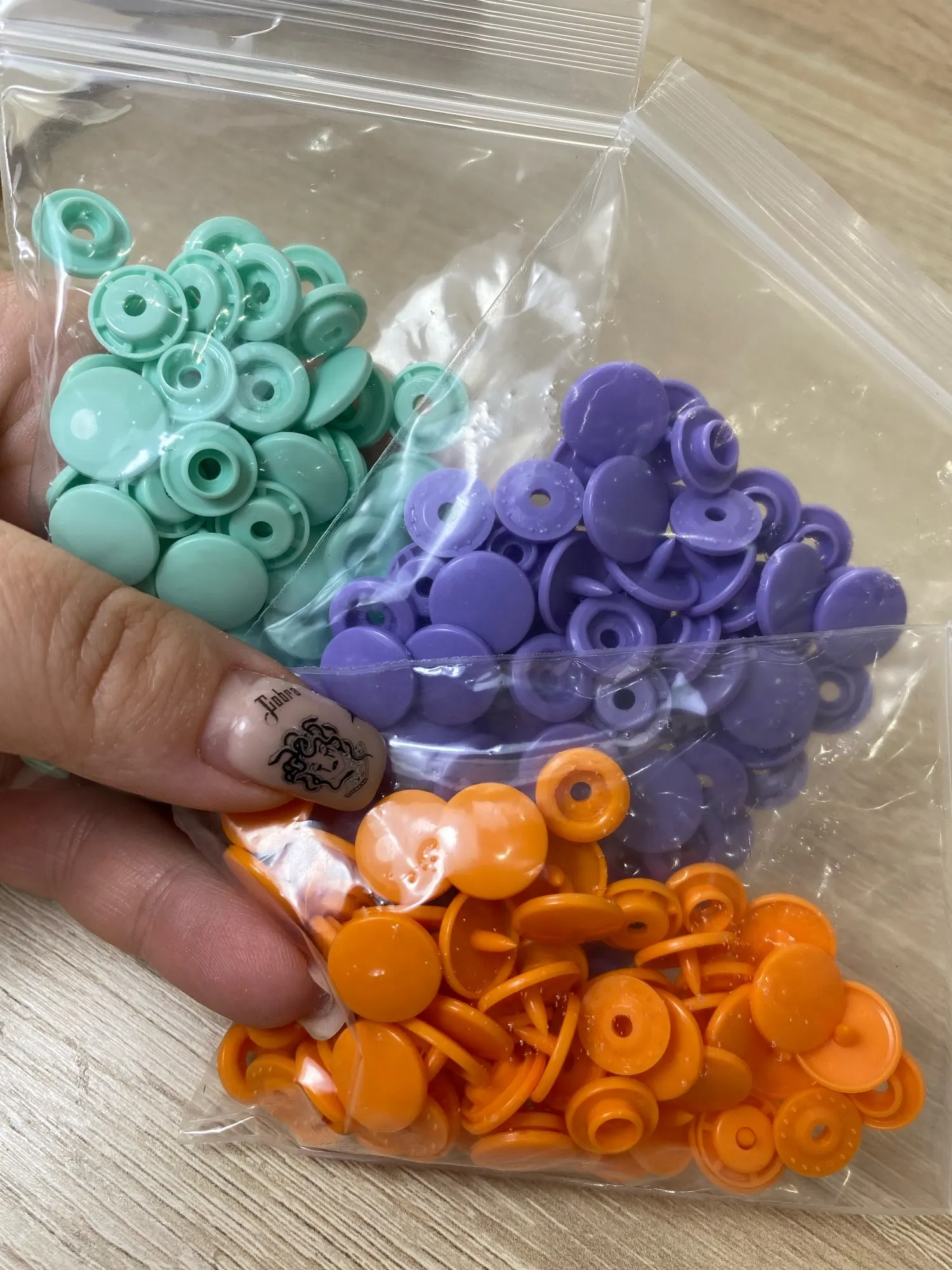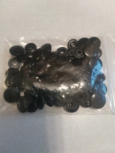 Очень крутые кнопки. Ставила щипцами prym с насадкой color snaps. На ткани держатся хорошо, открываются-закрываются туго, как и надо. На вид тоже отличные, не уступают родным кнопочкам prym