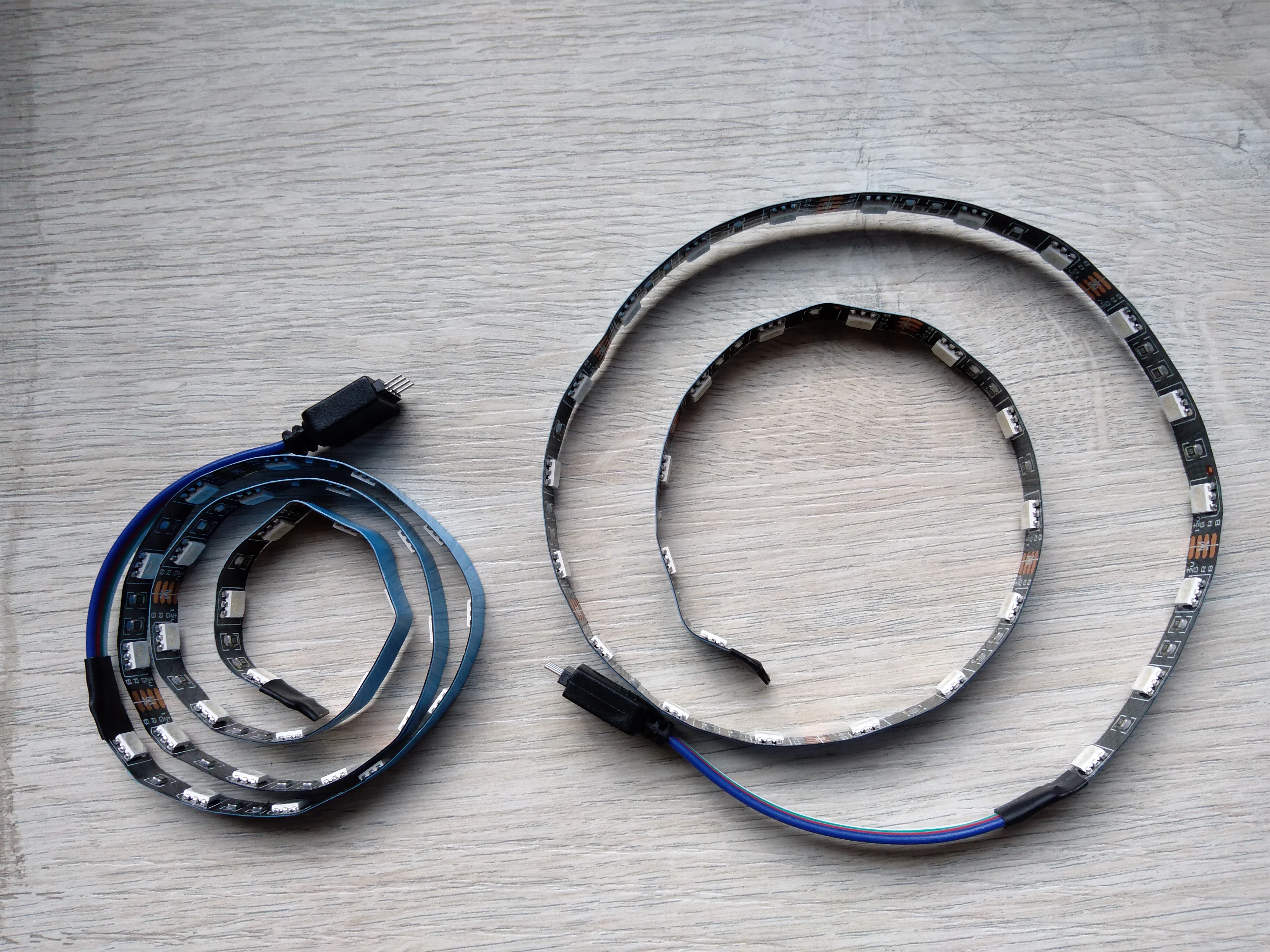 На самих лентах коннекторы пришли типа "папа", а не "мама". Придется искать переходник или их переделывать, чтобы подключить их по отдельности. Через комплектный переходник подключаются и работают, но совместно.