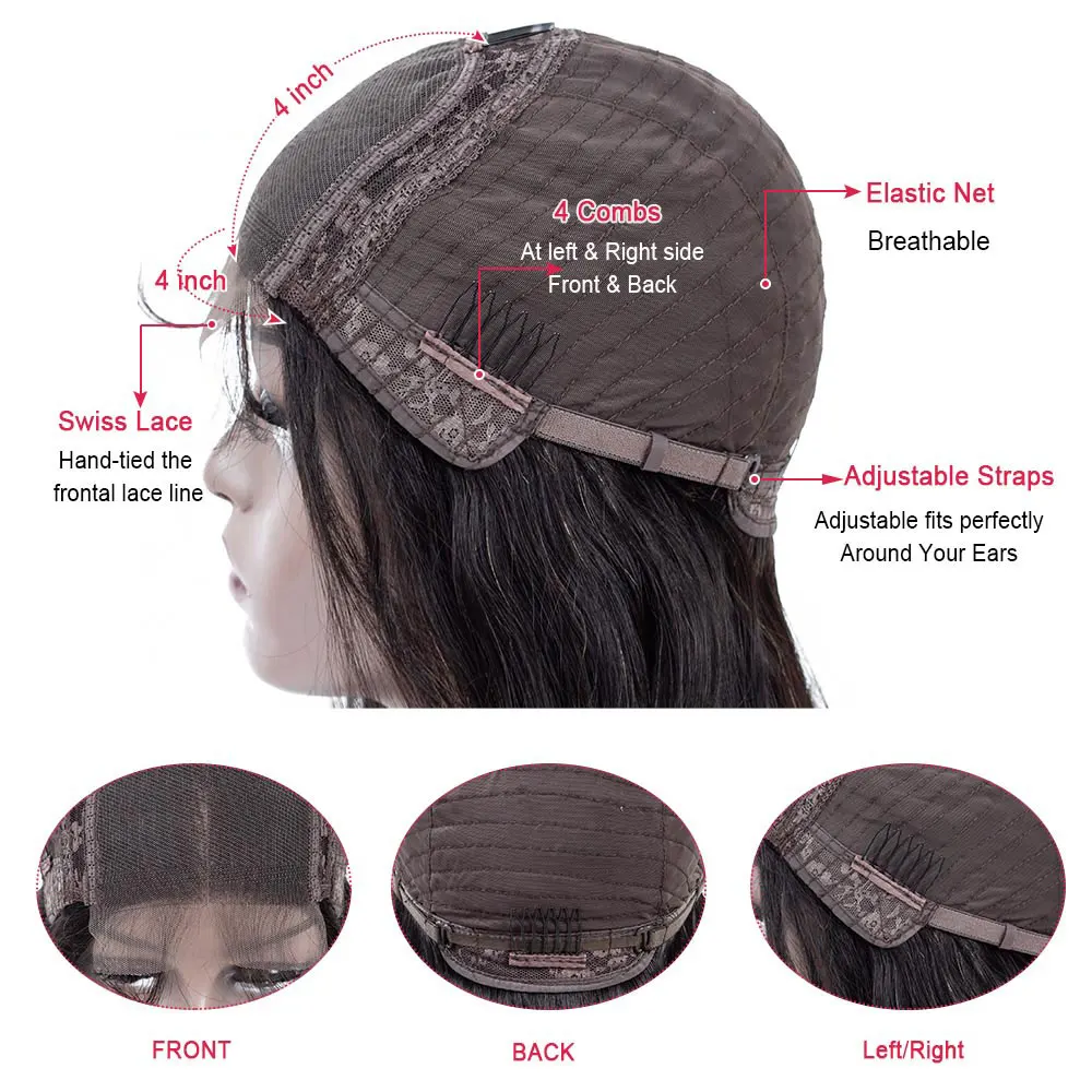 Парик на сетке 4x4, бразильский парик из человеческих волос, кудряв...