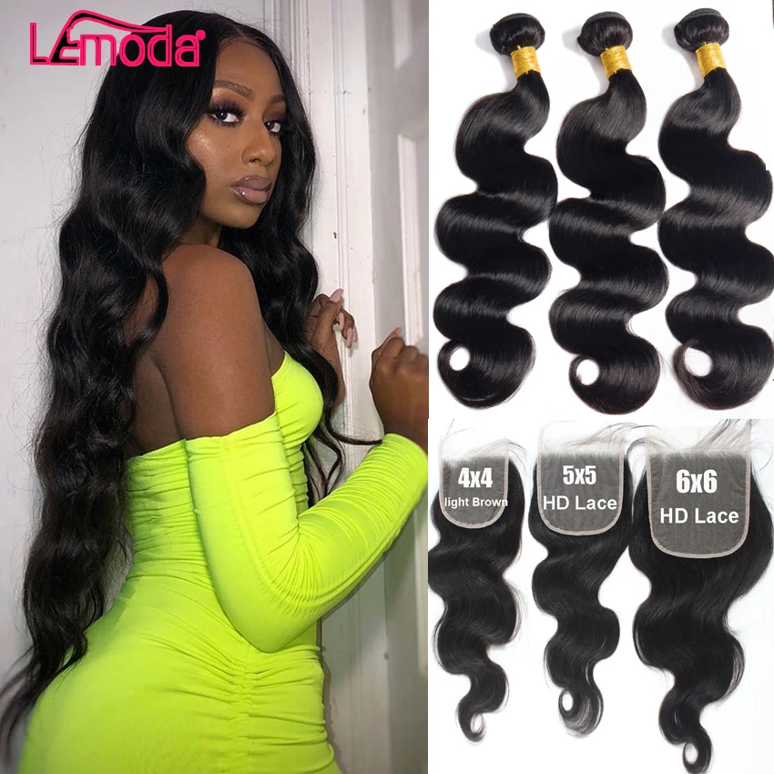 Пряди бразильских волос, волнистые, с застежкой только 4x4, 5x5, 6x6, HD, на фронтальной сетке и пряди, Lemoda Remy, наращивание волос