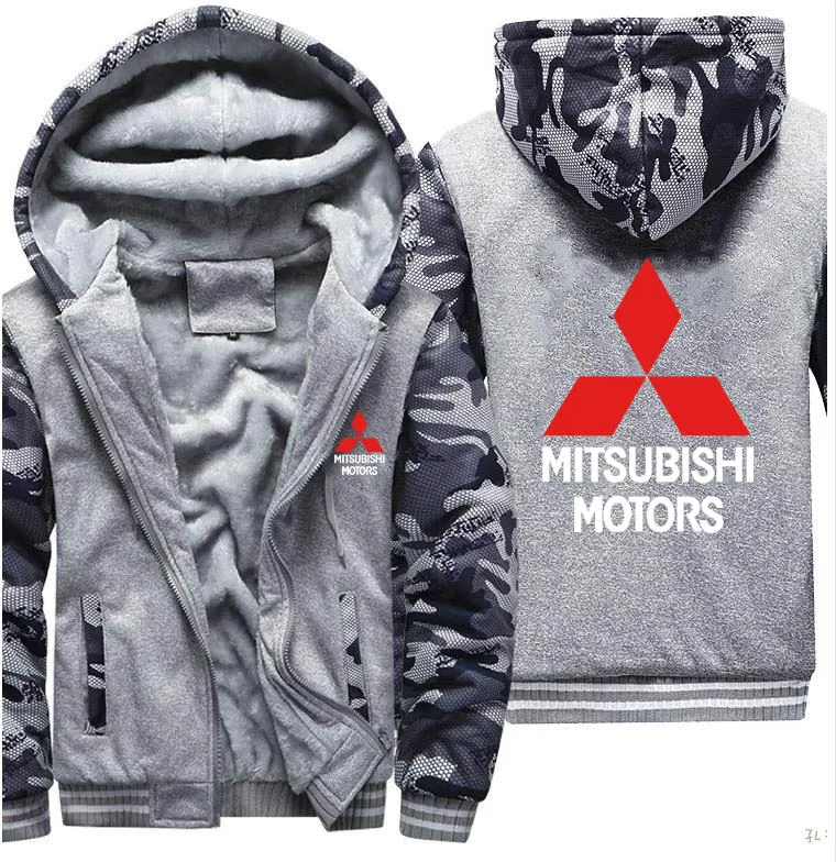 Мужские толстовки с капюшоном Mitsubishi, куртка с принтом логотипа автомобиля, мужские толстовки, зимнее утепленное флисовое хлопковое камуфляжное Мужское пальто реглан на молнии