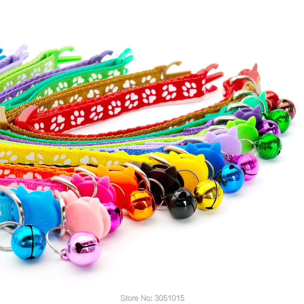Оптовая продажа, 100 шт., 13 цветов, ошейники для собак, ошейники для кошек, регулируемые с колокольчиком, ожерелье, ошейник для маленьких собак, горячая распродажа