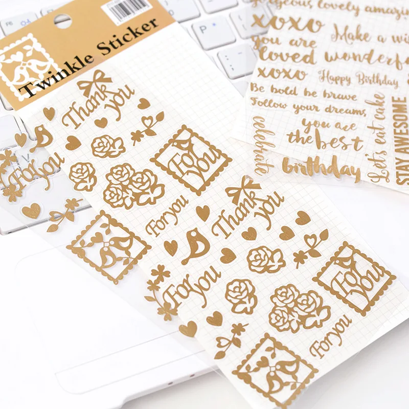 Золотые мерцающие повседневные декоративные из рисовой бумаги наклейки Скрапбукинг этикетка-наклейка дневник Канцелярские Стикеры для альбомов