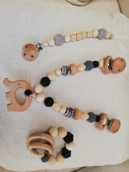 Прибыл быстро, выглядит так, как сделано из хорошего материала, к сожалению, маленькое кольцо сломалось во время доставки от самой длинной игрушки, но все еще полностью пригодно для использования :) надеюсь, моему ребенку понравится :)