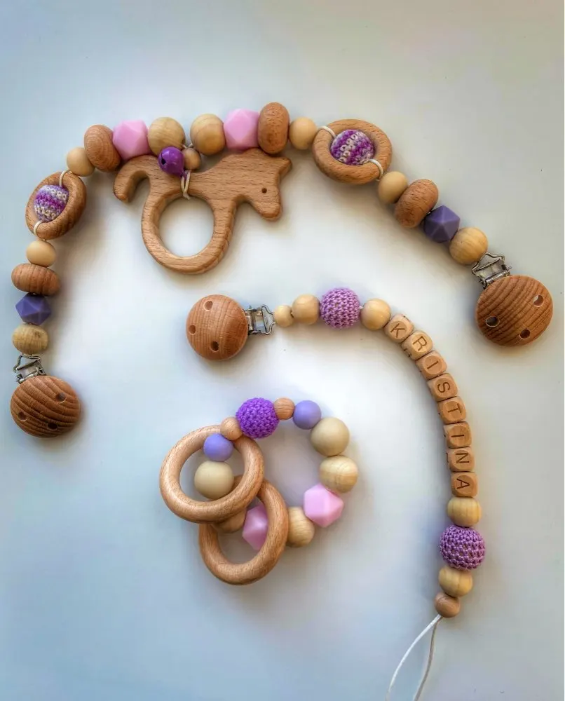 1 комплект, детская деревянная игрушка-грызунок из бука и жемчуга