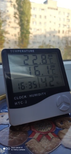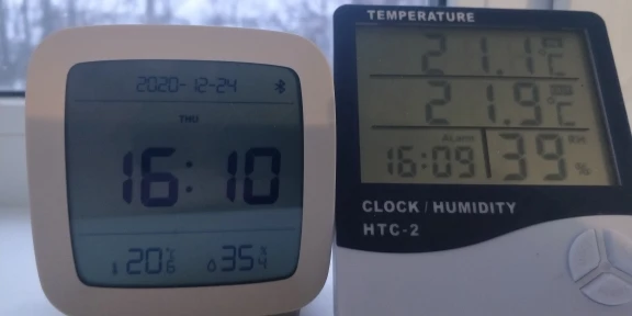 Очень сложно открыть отсек для батарейки, чуть не сломала. Температуру и влажность показывает, насколько точно не известно.