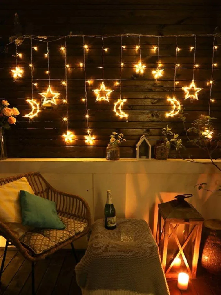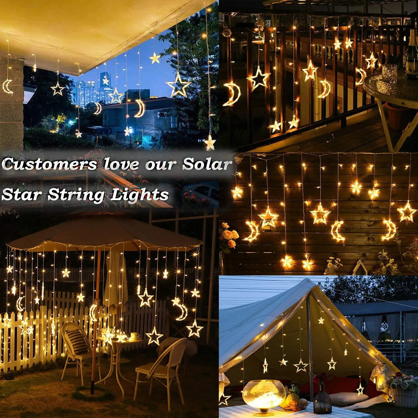 ИД Мубарак Луна, Звезды Рождественская гирлянда светодиодный занаве...