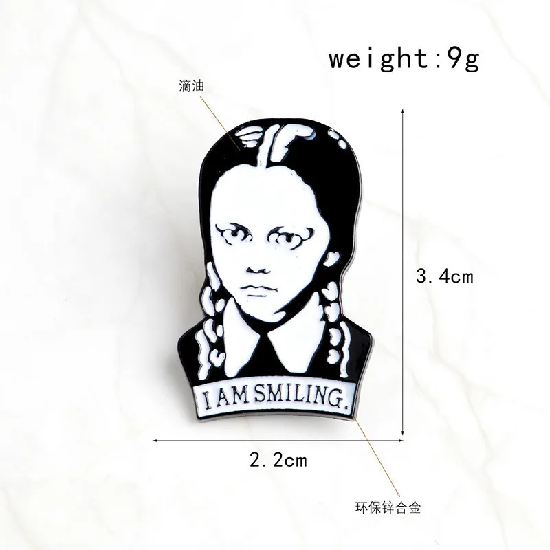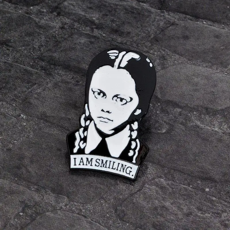 Семейная брошь Adams с эмалью I am Smiling в среду, булавка с жесткими отворотами, брошь для девочек, ювелирные изделия, аксессуары, панк, веселый подарок