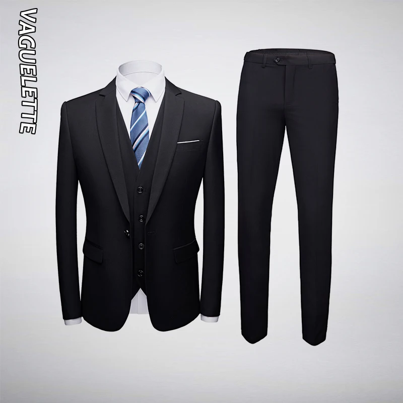 Мужской свадебный костюм VAGUELETTE, черный и ярко-синий приталенный костюм для выступлений, однотонный серый костюм из 3 предметов со штанами, 2019