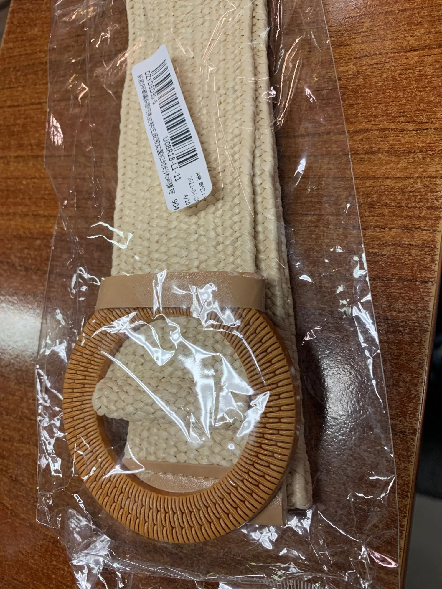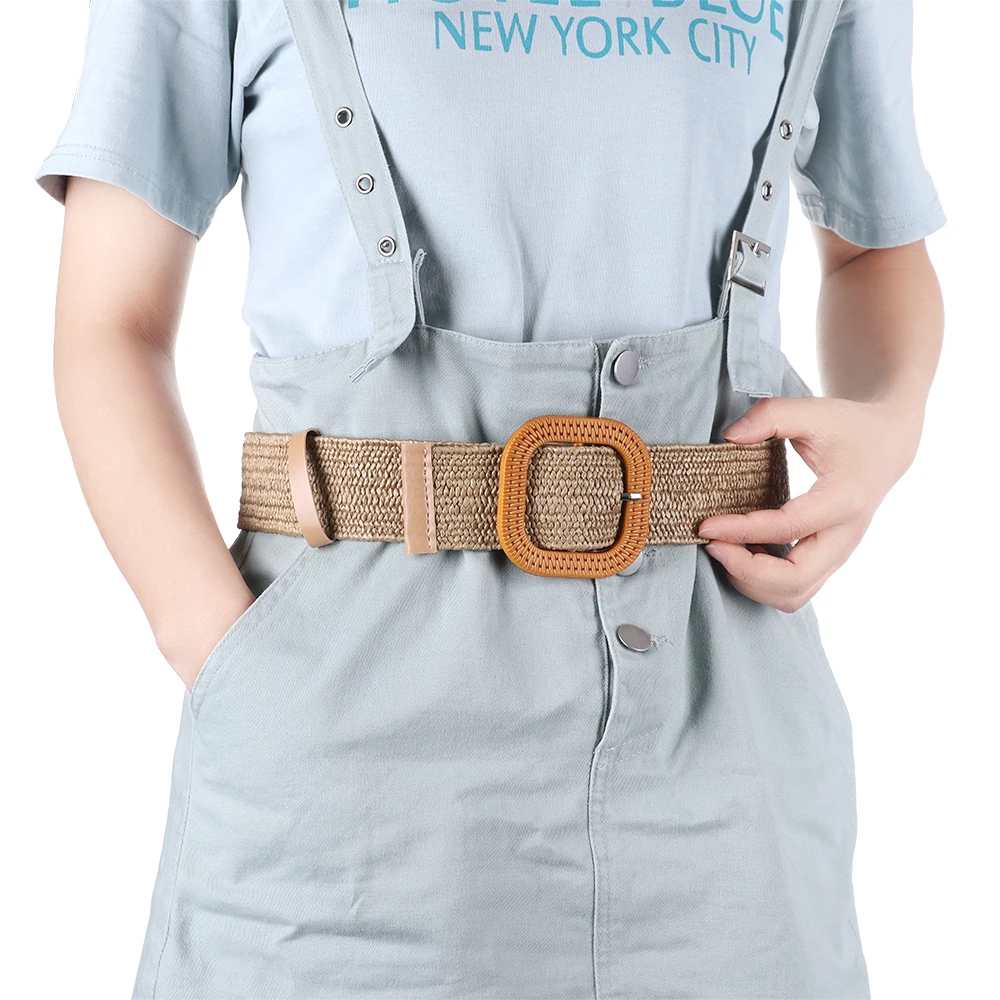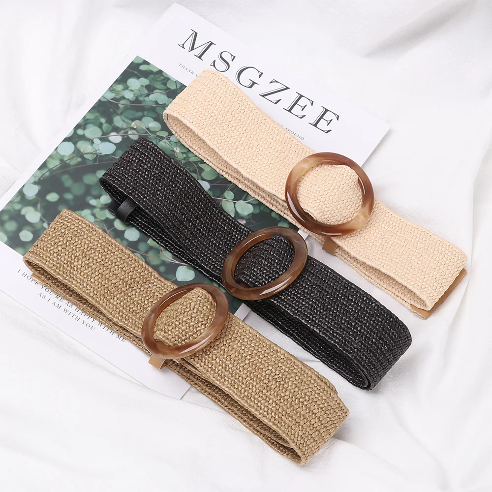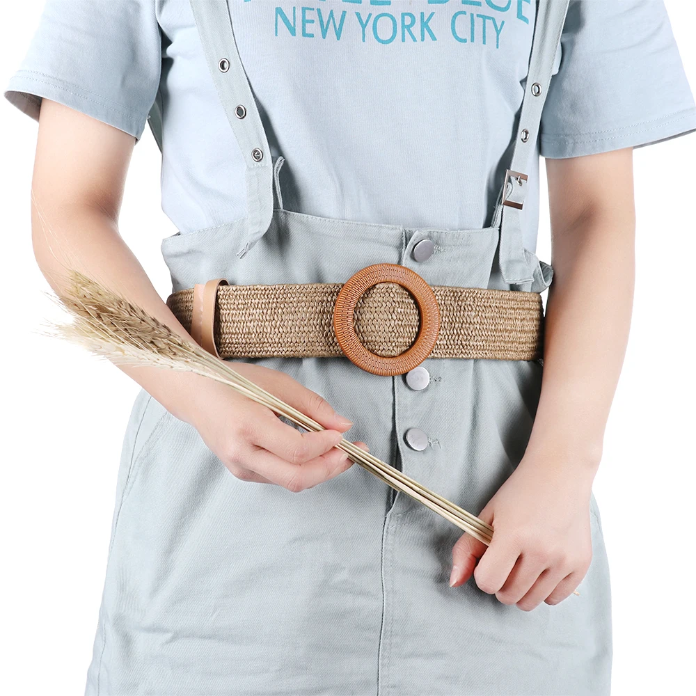 Ремень женский Плетеный, из полипропилена, с круглой Нефритовой пряжкой