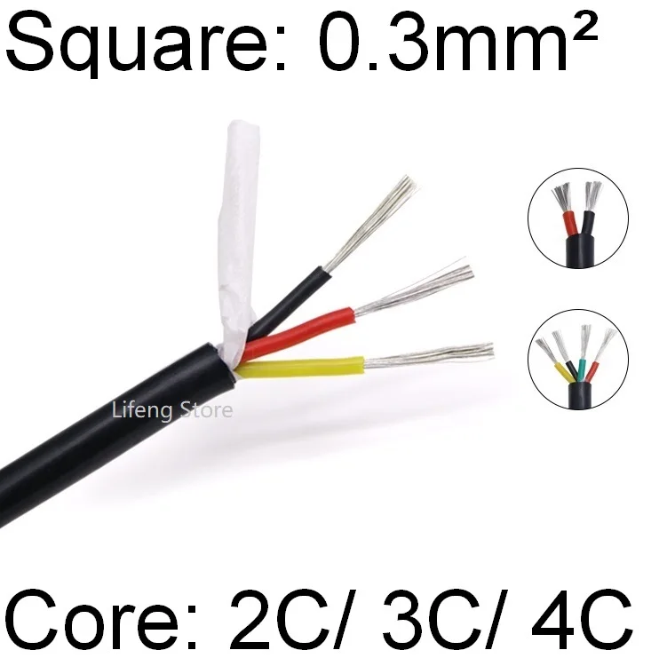 Квадратный провод с оболочкой 0,3 мм, 2-ядерный, 3-ядерный, 4-ядерный, супермягкий, силиконовый, резиновый, изолированный медный кабель, линия сигнала питания, высокая температура