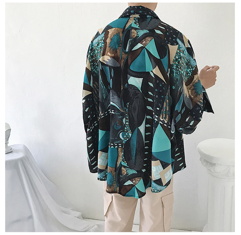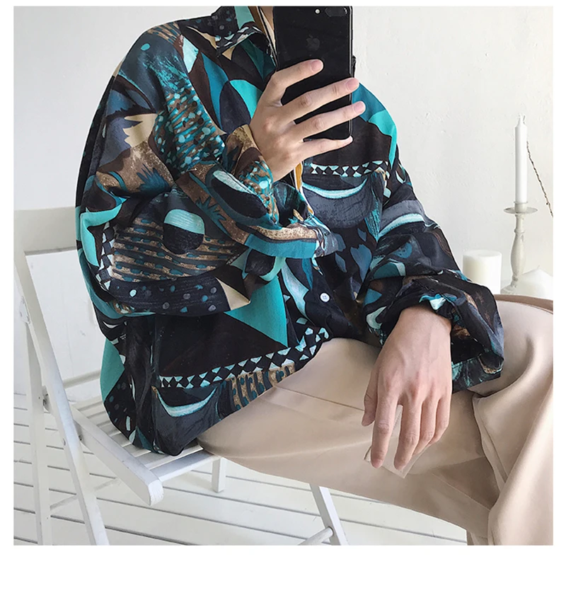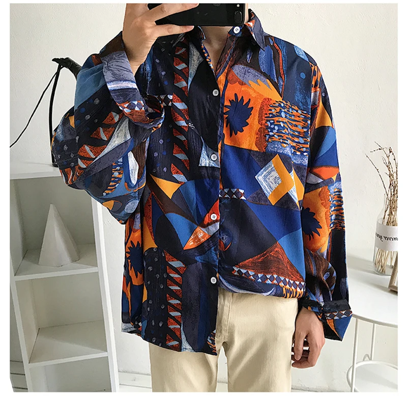 Мужские рубашки с принтом в японском уличном стиле, повседневные корейские модные рубашки для мужчин Modis, геометрические дизайнерские рубашки Camisa Masculina