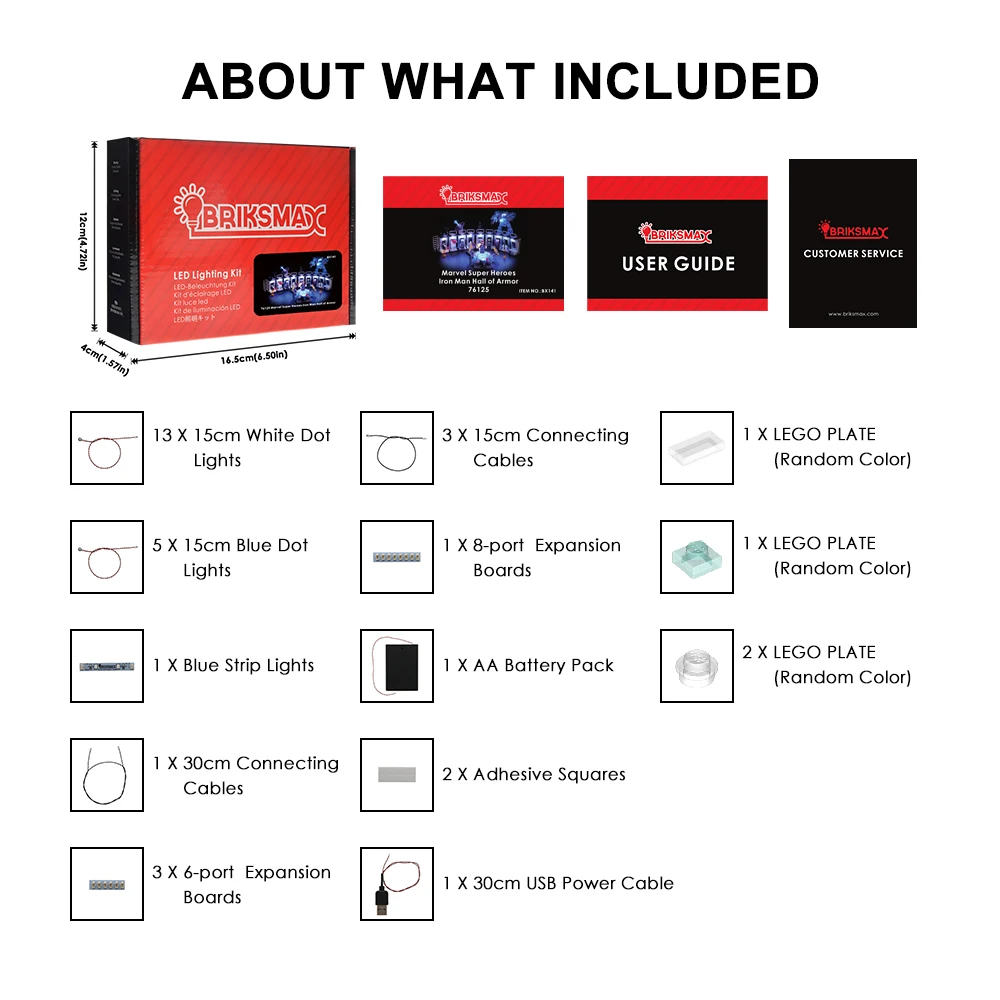 Комплект со светодиодсветильник кой BriksMax для строительных блоков Tony Stark, совместимых с 76125
