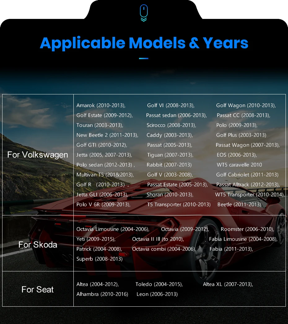 For Vehicle Brands/ModelFor Volkswagen/Seat/Skoda/Passat/Golf/Polo