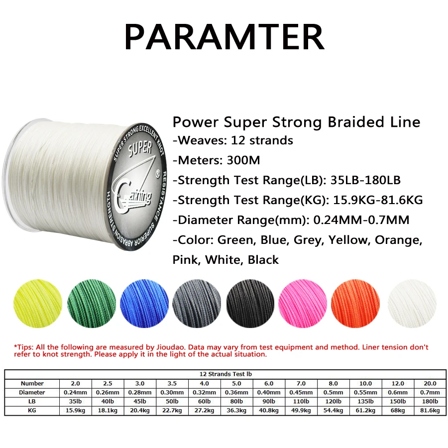 Lina de pesca trenzada de 12 hebras, superfuerte, japonés, 300m, multifilamento, PE, pesca de carpa, 40, 50, 60 y 80lb hilos trenzados para pescar